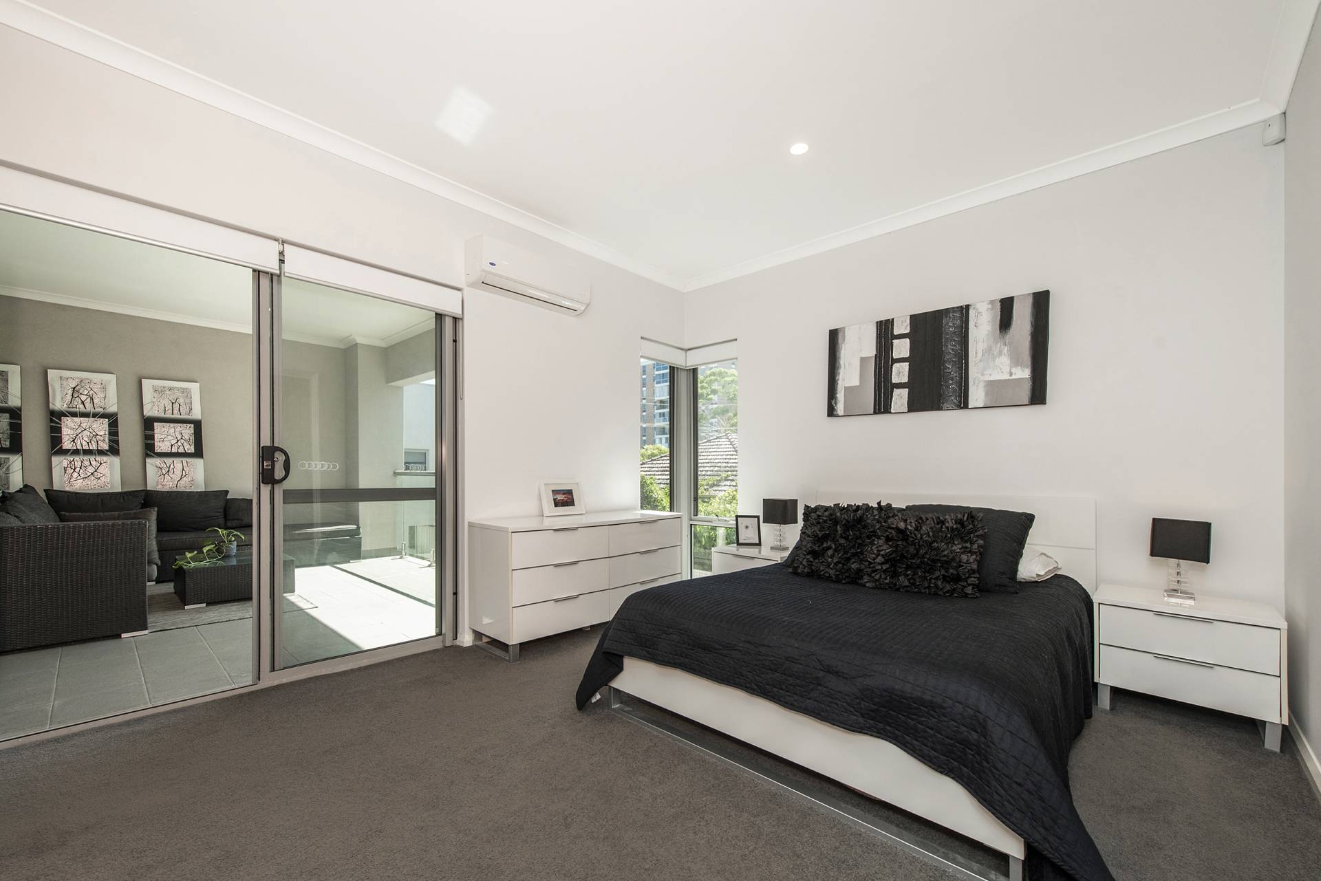 Double sliding doors lead to the large private balcony, perfect for entertaining family and friends.
