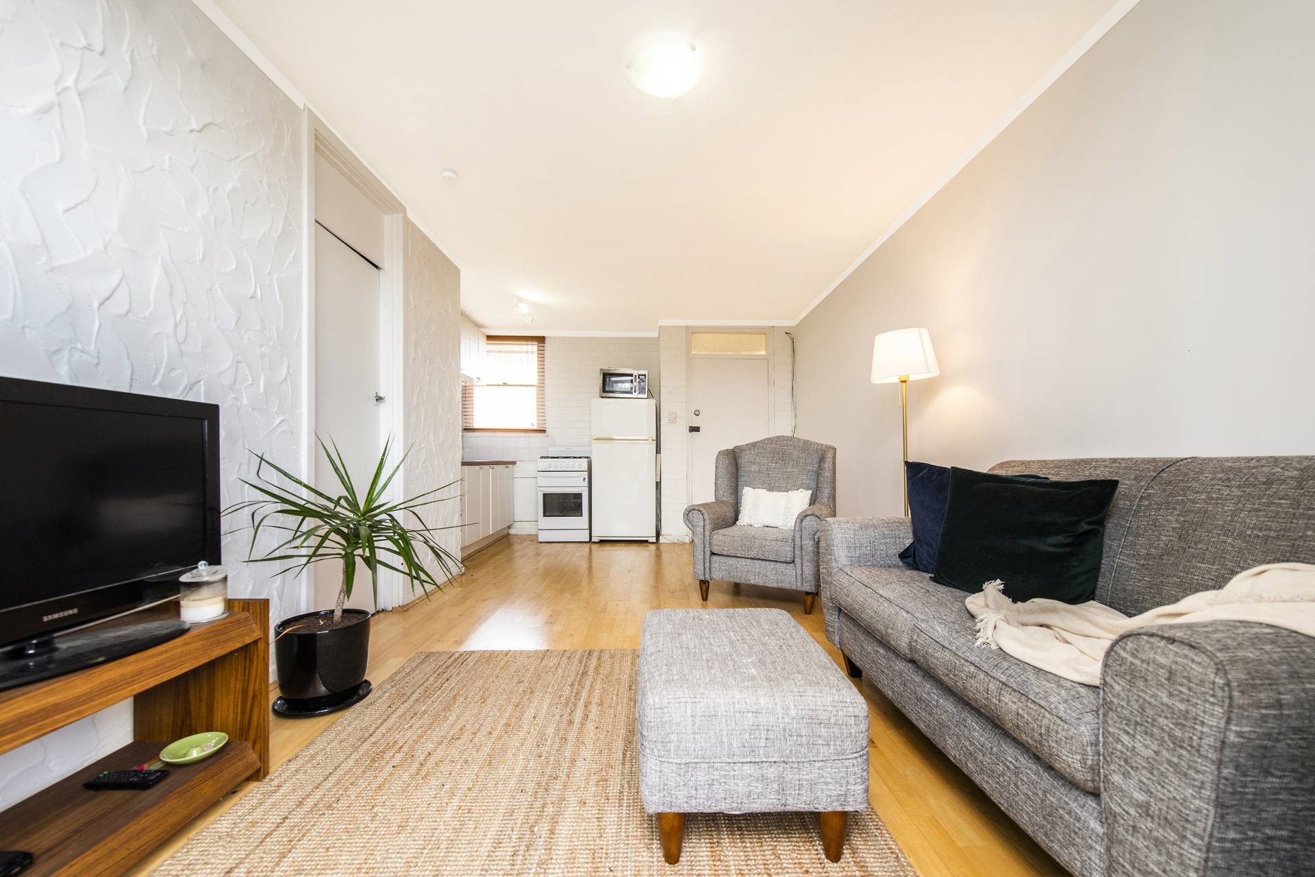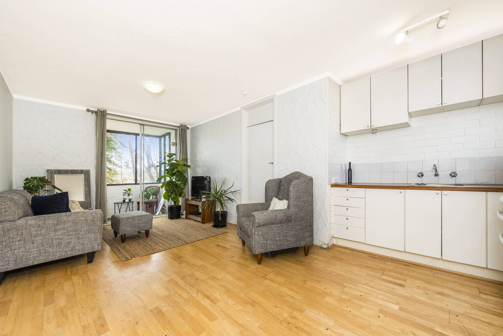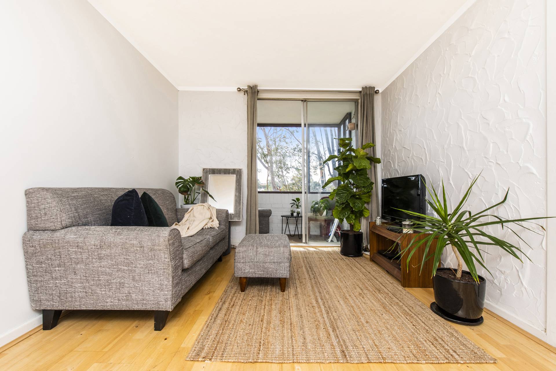A light bright apartment perched on the fourth floor with a tranquil gumtree backdrop.