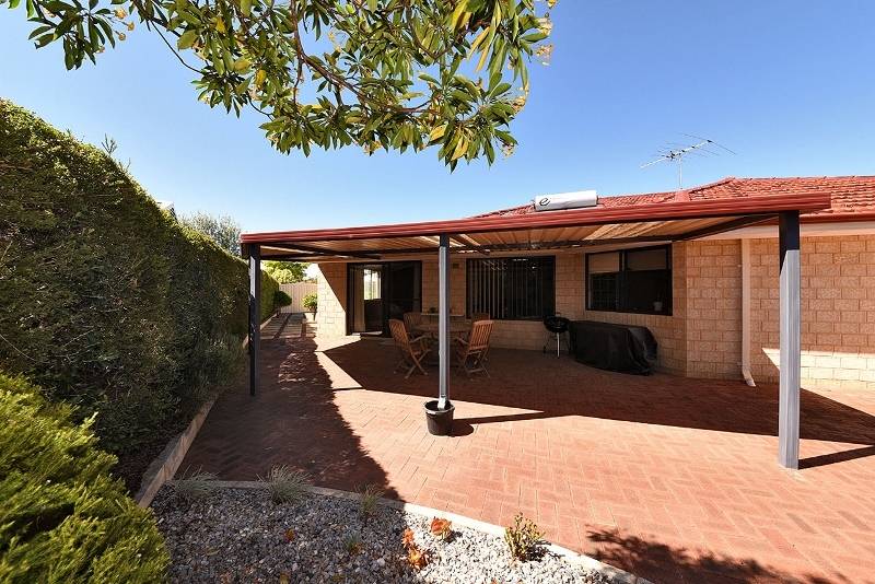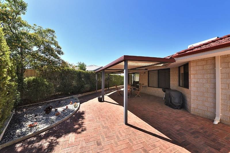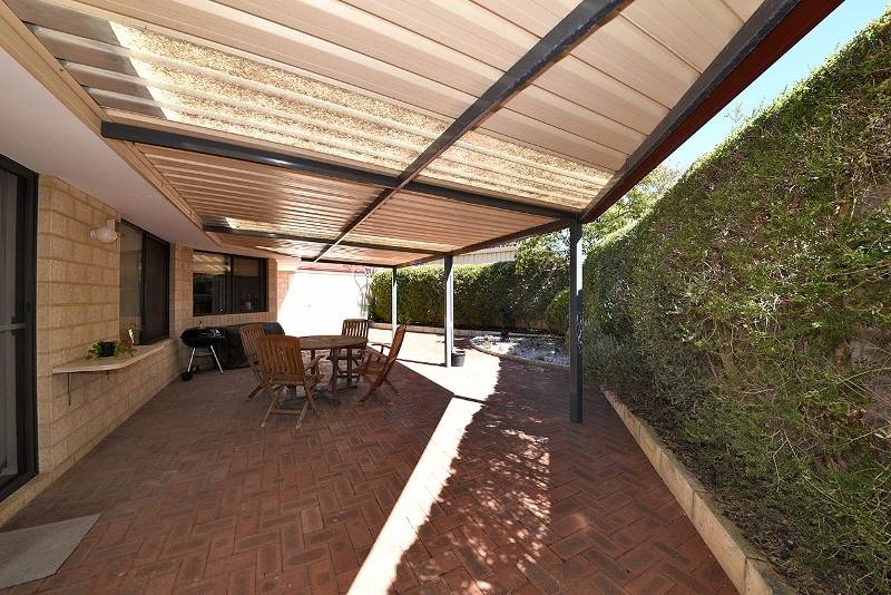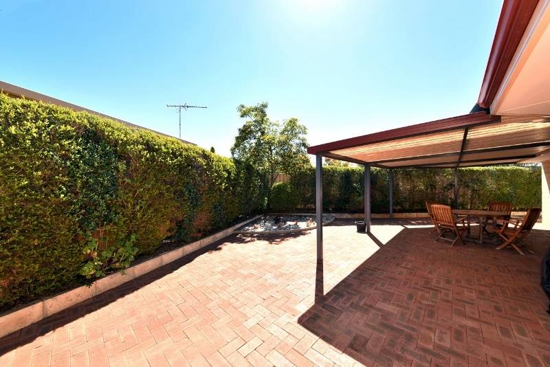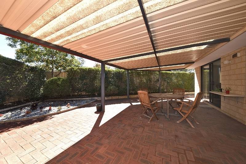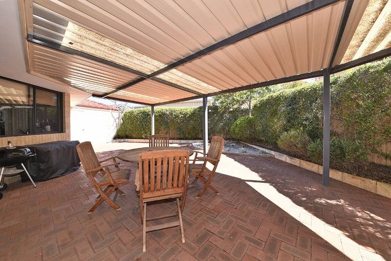Spacious patio outdoor entertaining overlooking low maintenance and easy care backyard