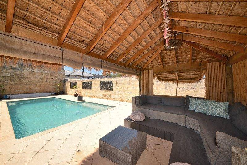 The very private, magical Bali style pool area boasts thatched gazebo, fully decked out for outdoor summer living and entertaining. Fully fenced 58,000L salt water pool including outdoor powder room and shower and wc.