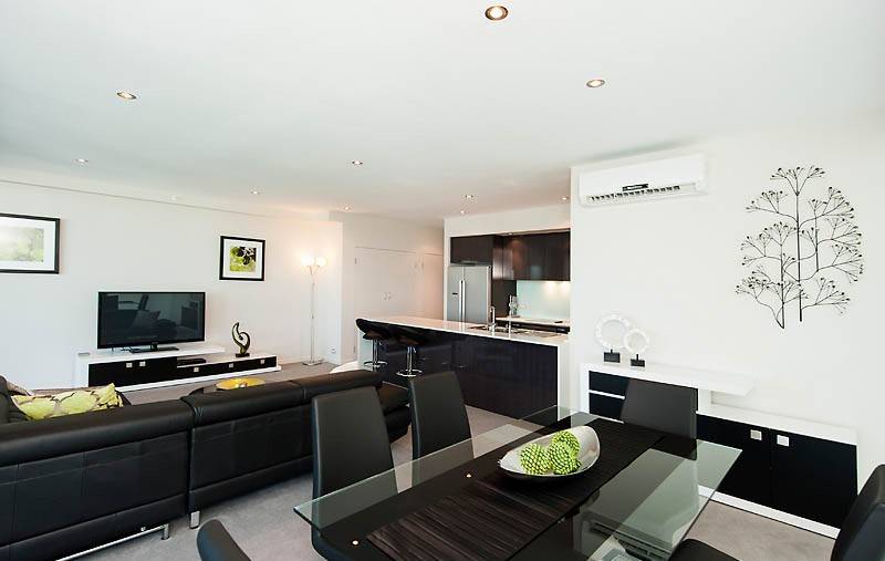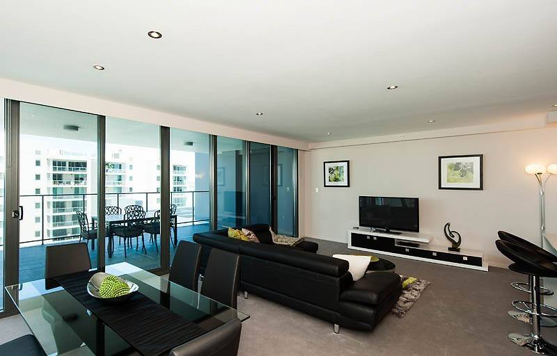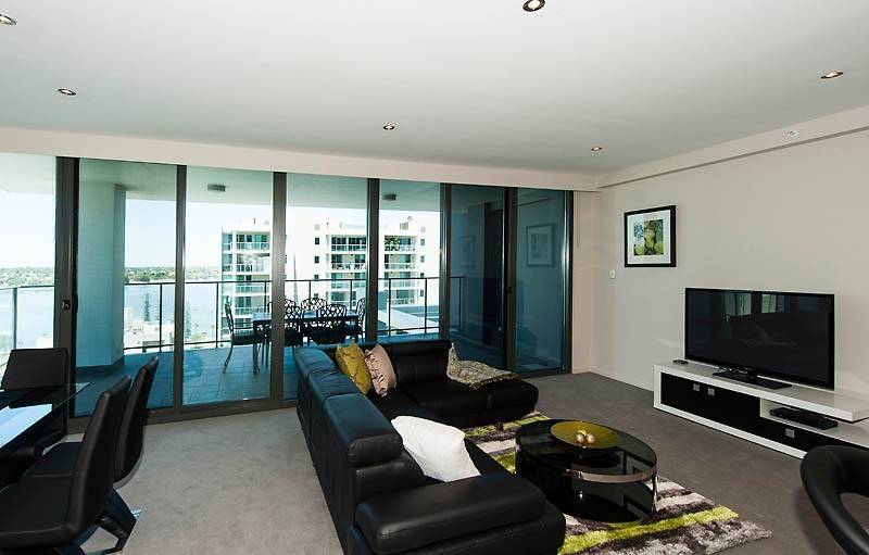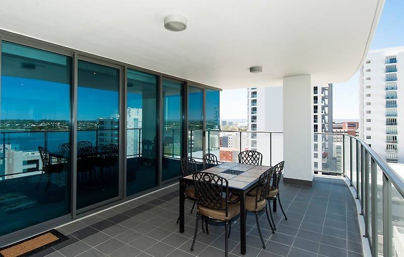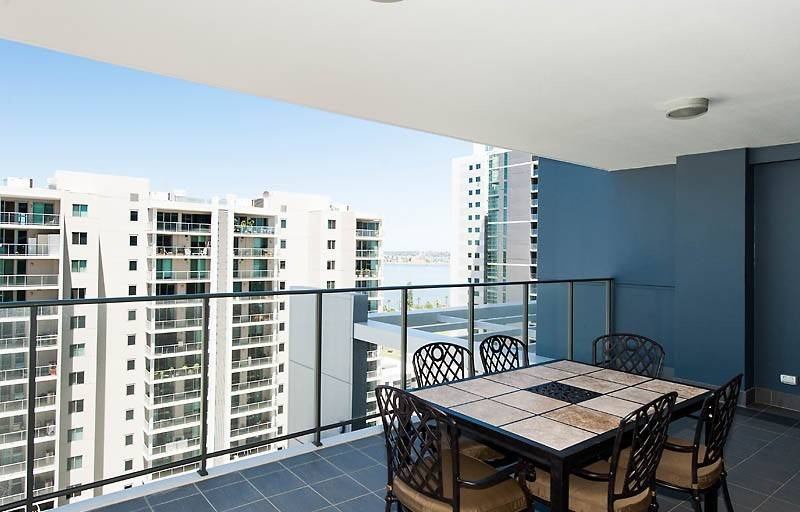 This Spacious 3 bedroom, 2 bathroom apartment with river views is professionally furnished for the high end corporate cliental. With over 114m2 of living space and 32m2 of balcony space both apartments have full swan river views from kitchen, lounge/dining as well as master suite. Located on the 8th floor, swan river views can be seen from master bedroom, living area as well as kitchen. Apartment also comes with 2 parking bays as well as storage shed.