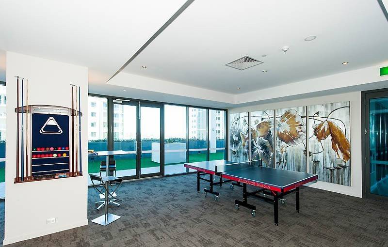 With initiative spaces including an extensive street level plaza, terraced amphitheatre, water fountains, stepped seating and cafe/restaurants this apartment complex will please all corporate cliental. Building also boasts pool table room, outdoor green viewing area, sky lounge and swimming pool area.