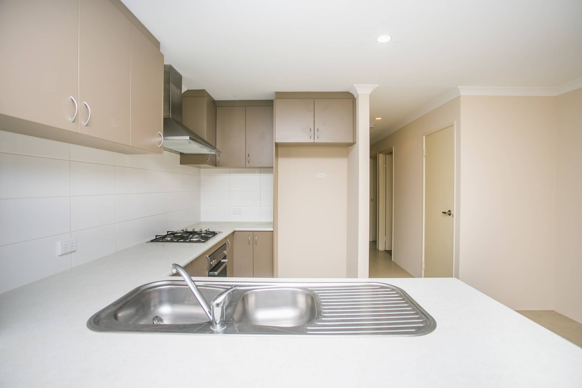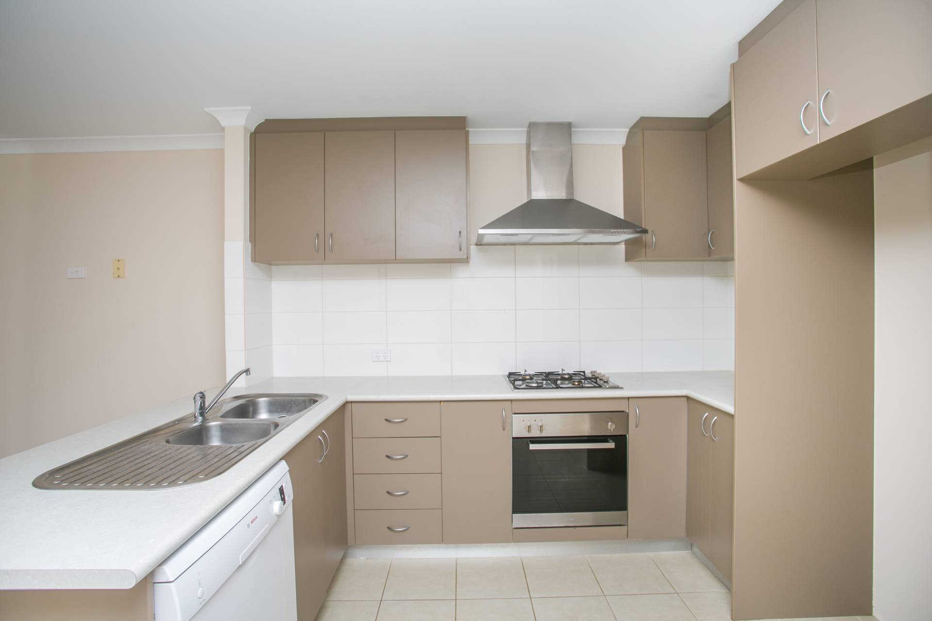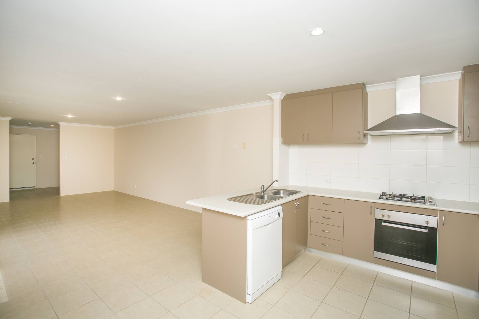 The central kitchen includes a four-burner gas cooktop, electric oven, canopy rangehood, double sink and Bosch dishwasher, and overlooks a lovely, light-filled open plan living and meals area. Sliding doors lead outside, where a paved courtyard awaits your inspiration.