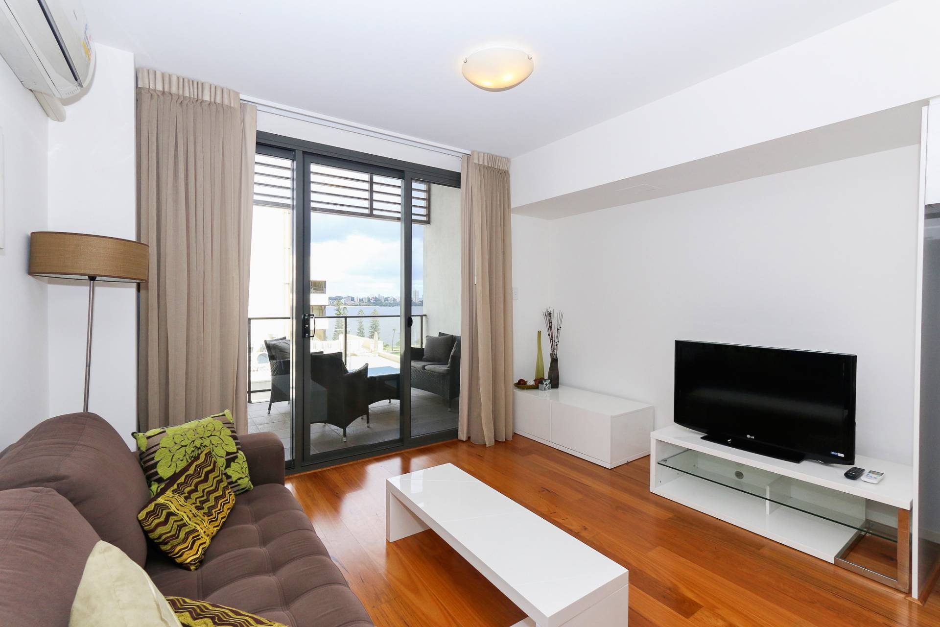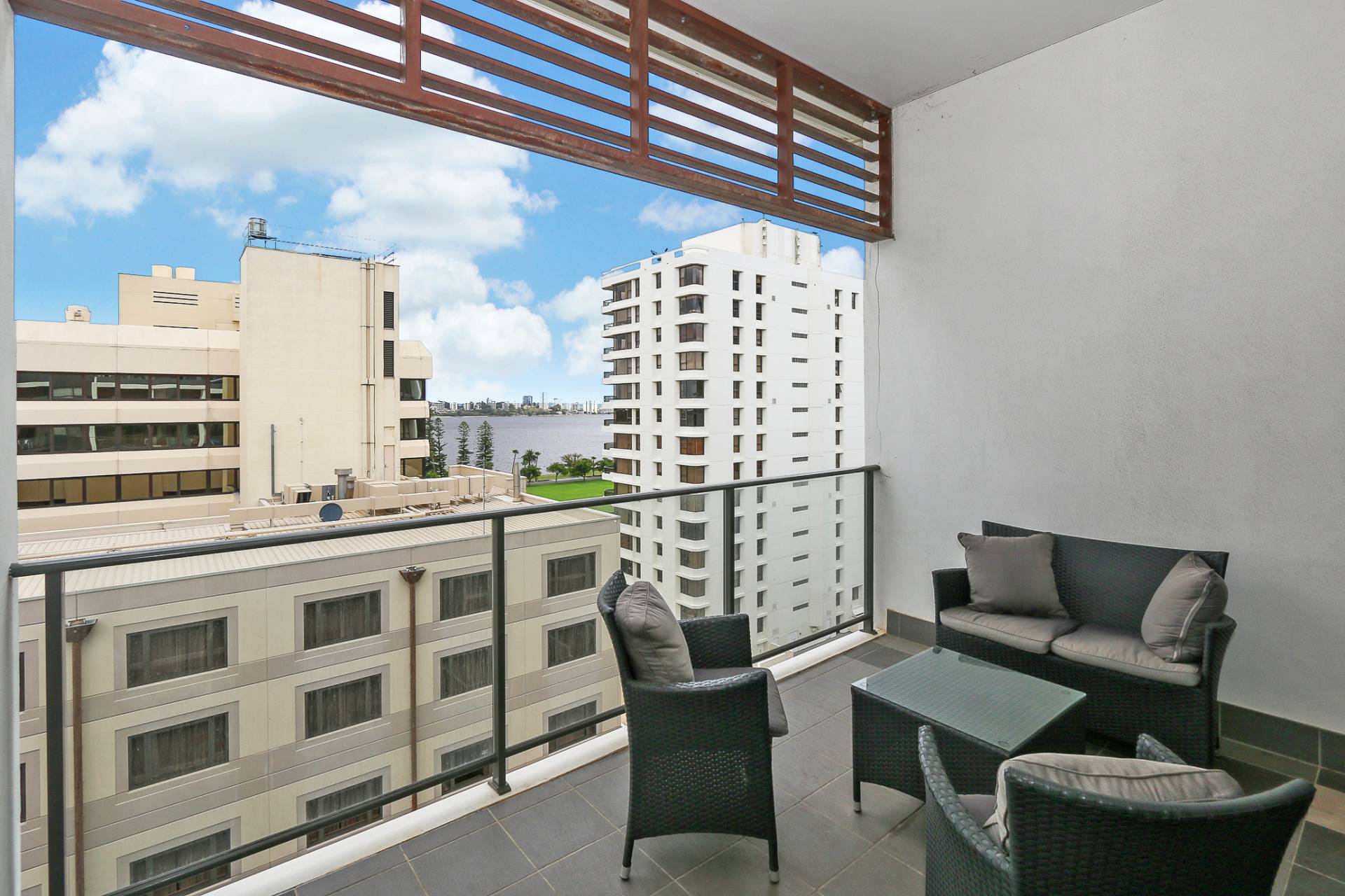 Compact and easy living in this fully furnished & equipped 9th floor South facing apartment with river views.