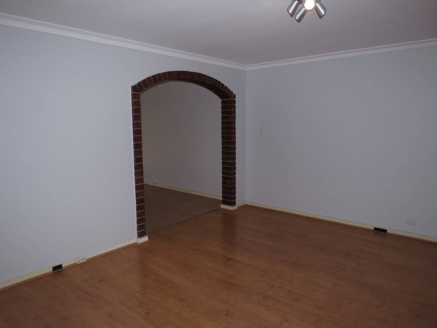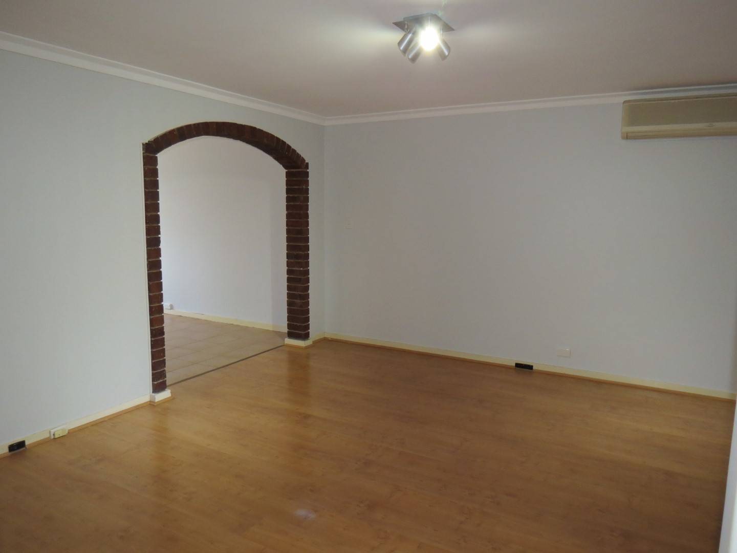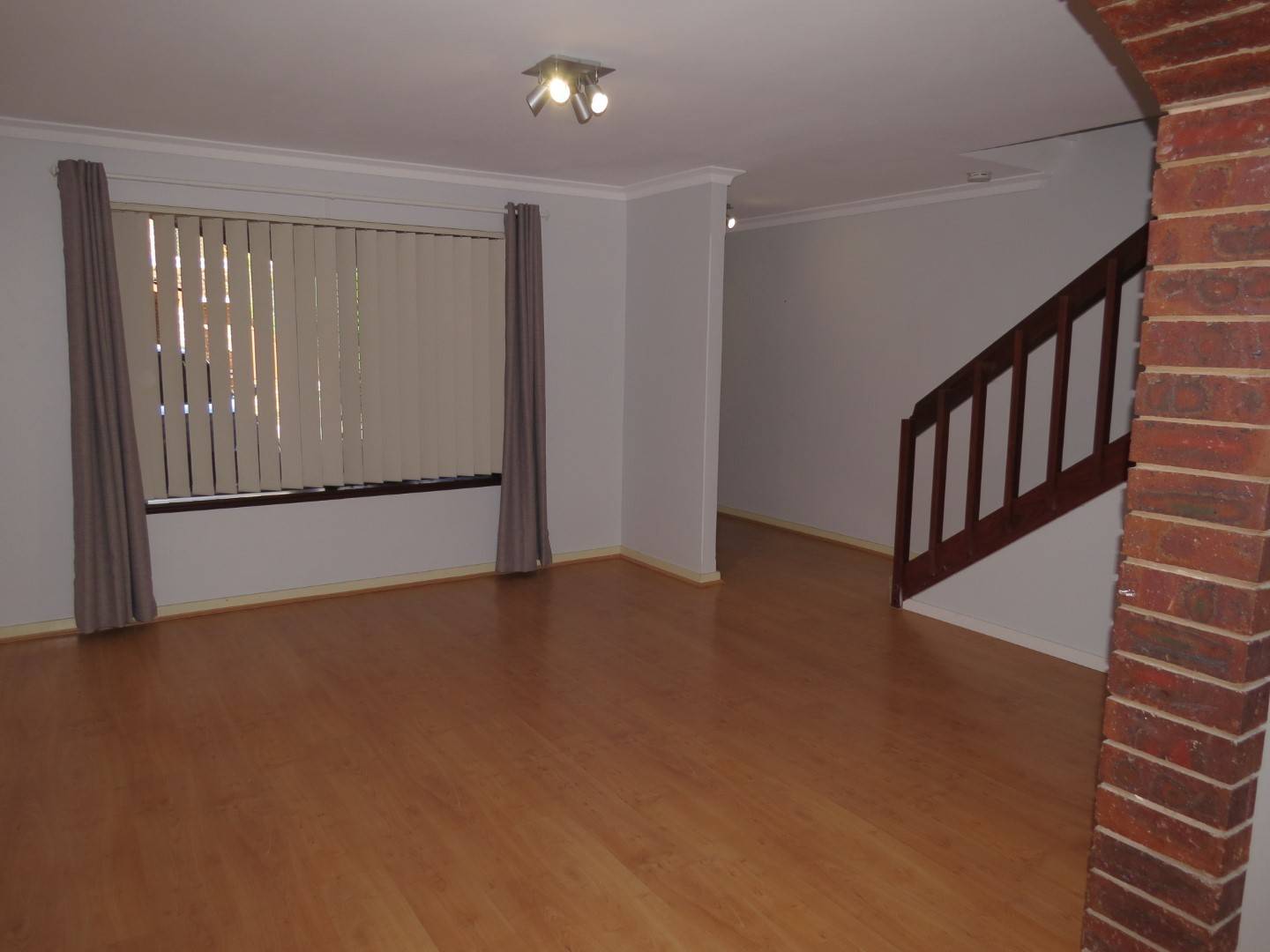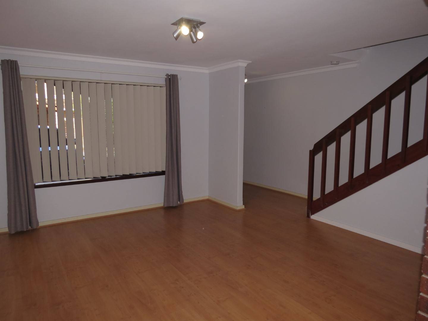 The home is split over two levels – living, dining, kitchen, laundry and toilet downstairs and the three bedrooms and bathroom upstairs.