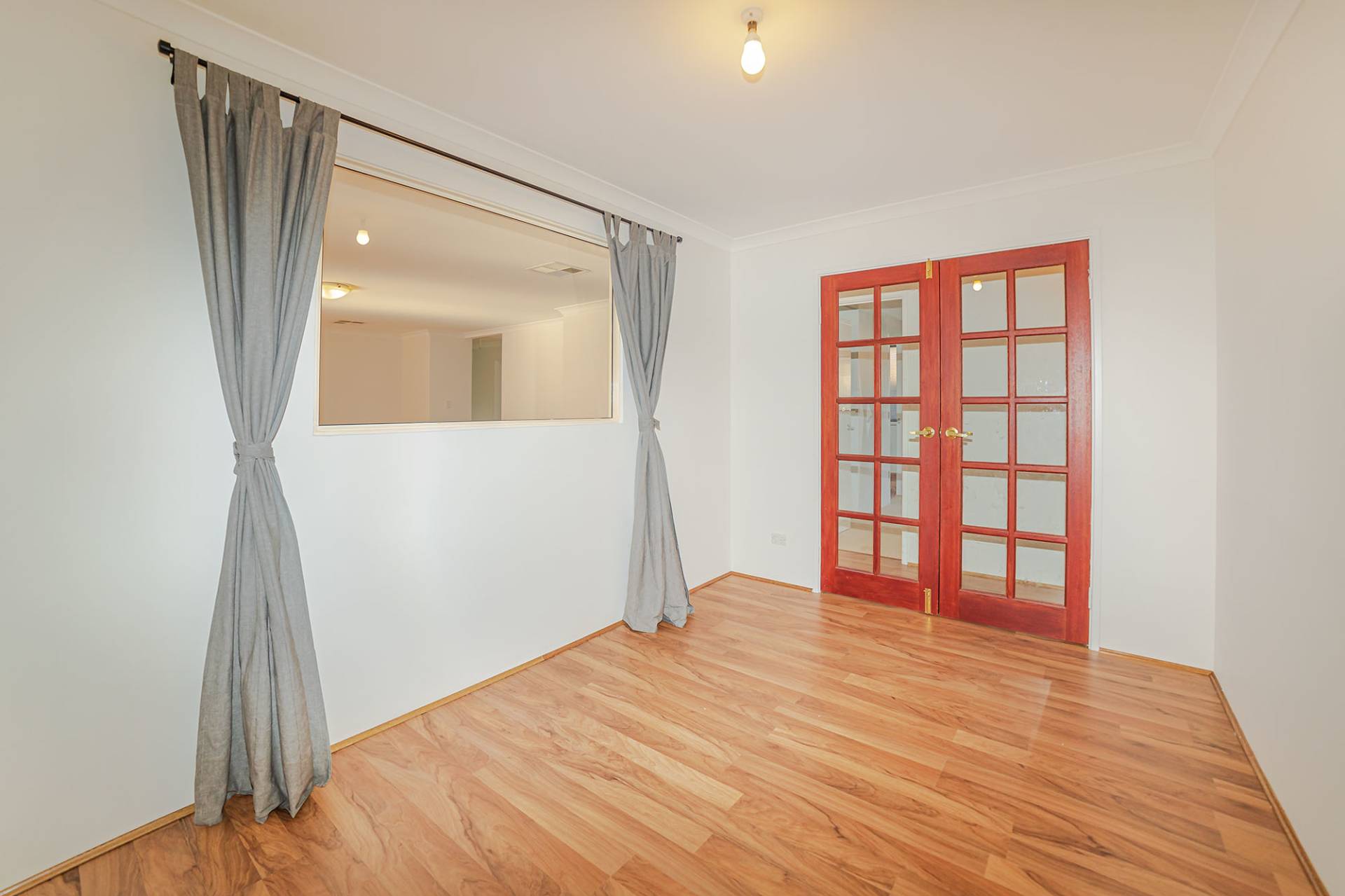 Warm, engineered timber flooring flows throughout the open-plan living and dining area, with carpets to the bedrooms. A living area at the front of the home offers a separate space for gaming, a theatre room or formal living. Timber French doors lead to an office from the hallway - perfect for a dedicated study area or for running a home-based business.