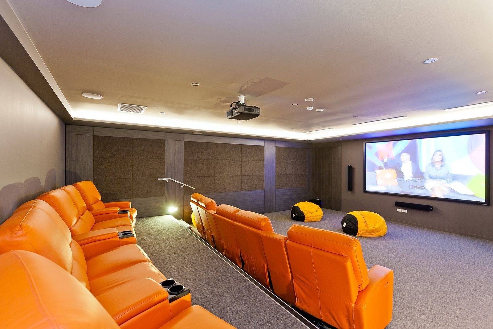 * Resident Theatrette with 120 inch wide screen hifi equipment and tiered seating