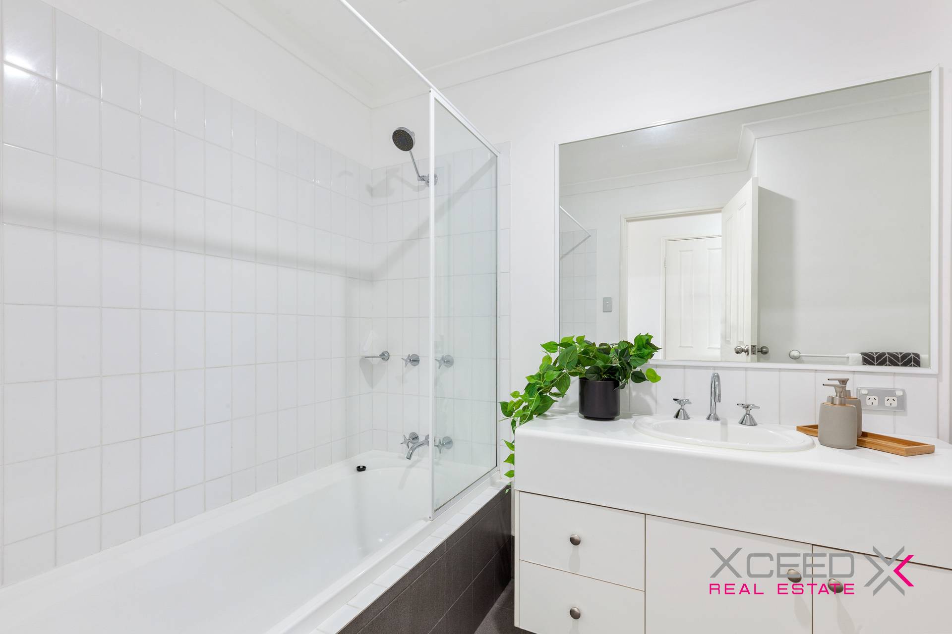 The master bedroom is spacious and airy, complete with expansive floor-to-ceiling sliding robes and a contemporary en-suite. Two further generous bedrooms also feature floor-to-ceiling built-in robes, serviced by a second modern bathroom with separate WC.