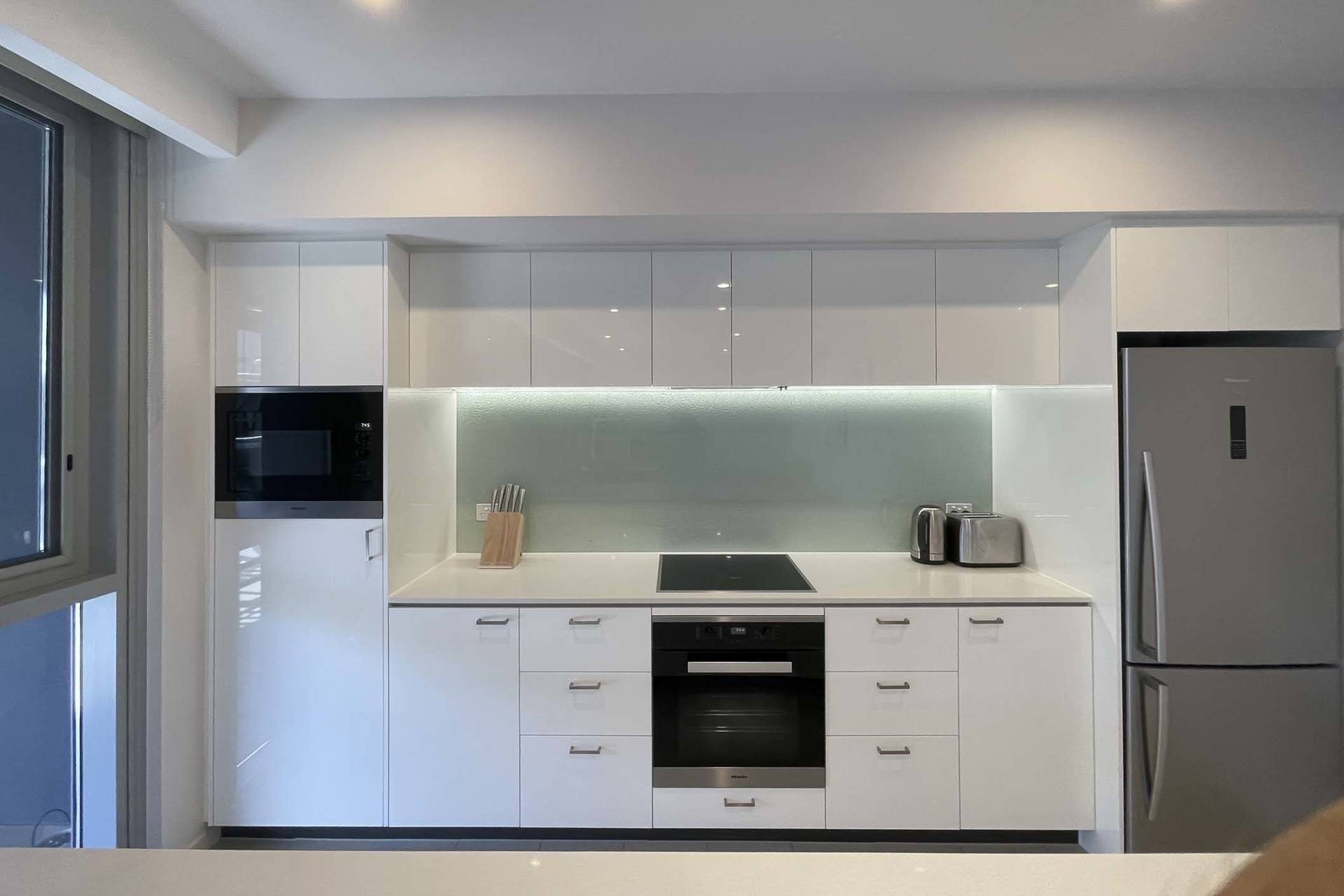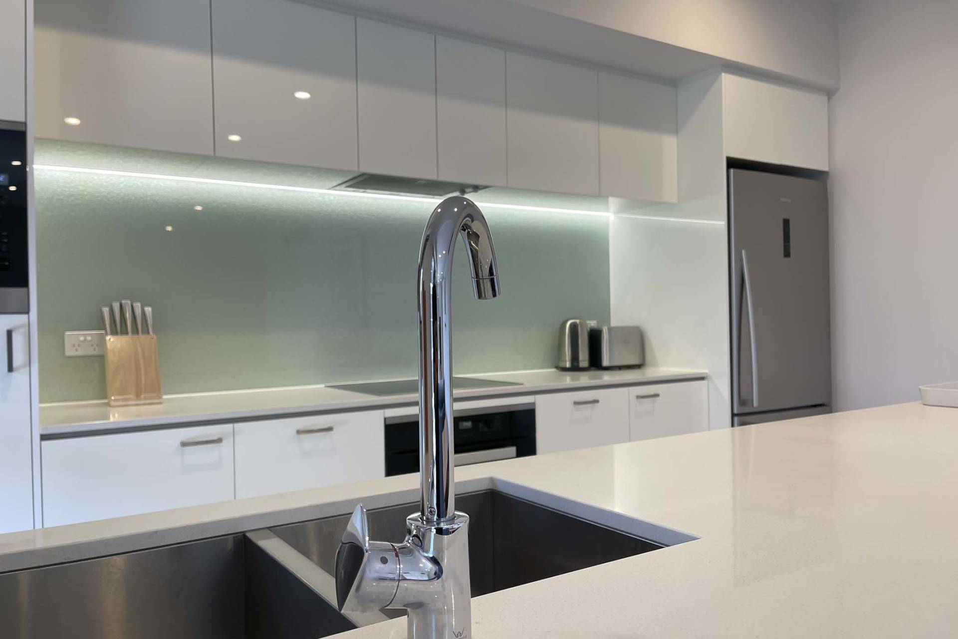 - Open plan kitchen, living and dining