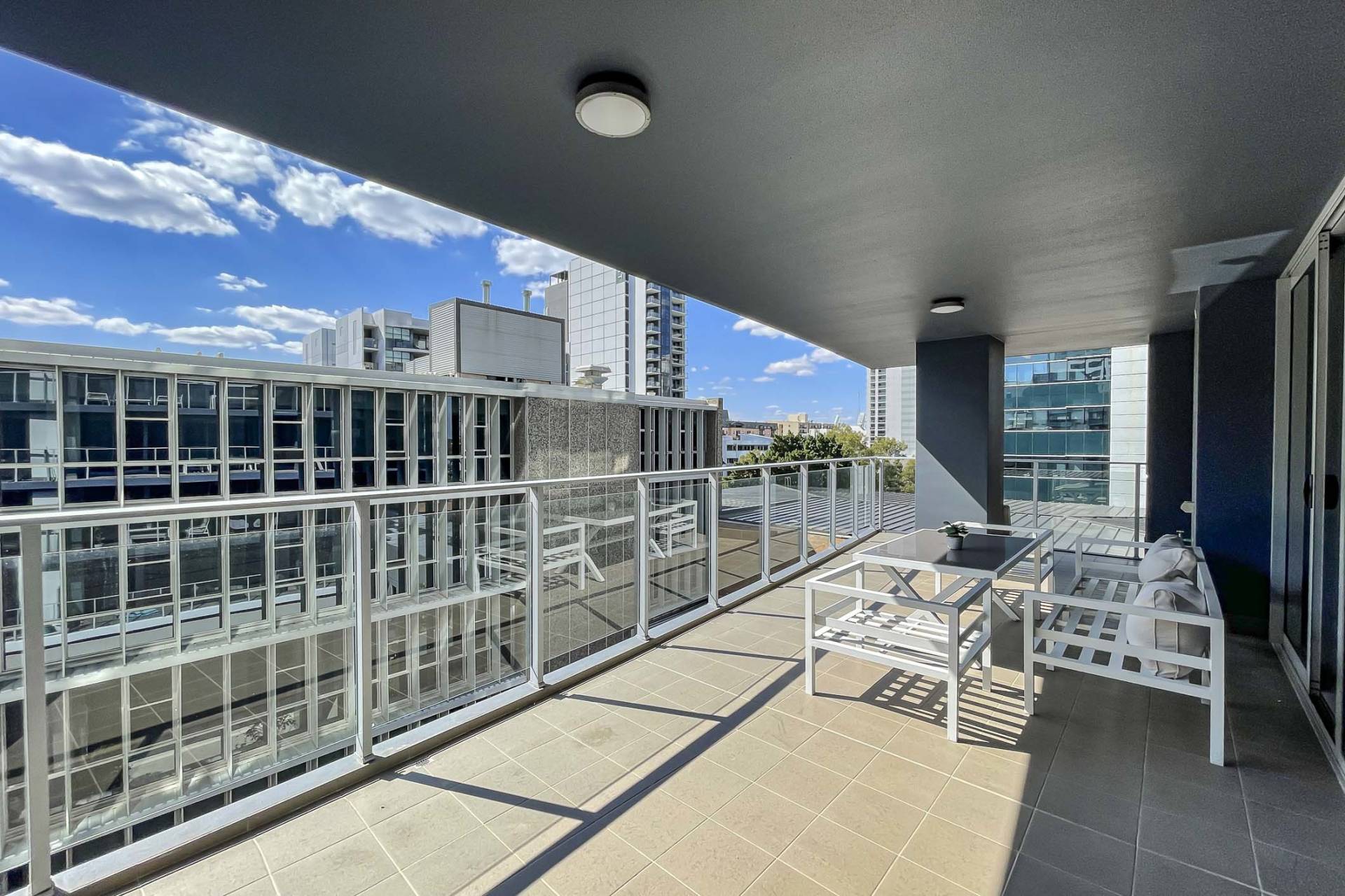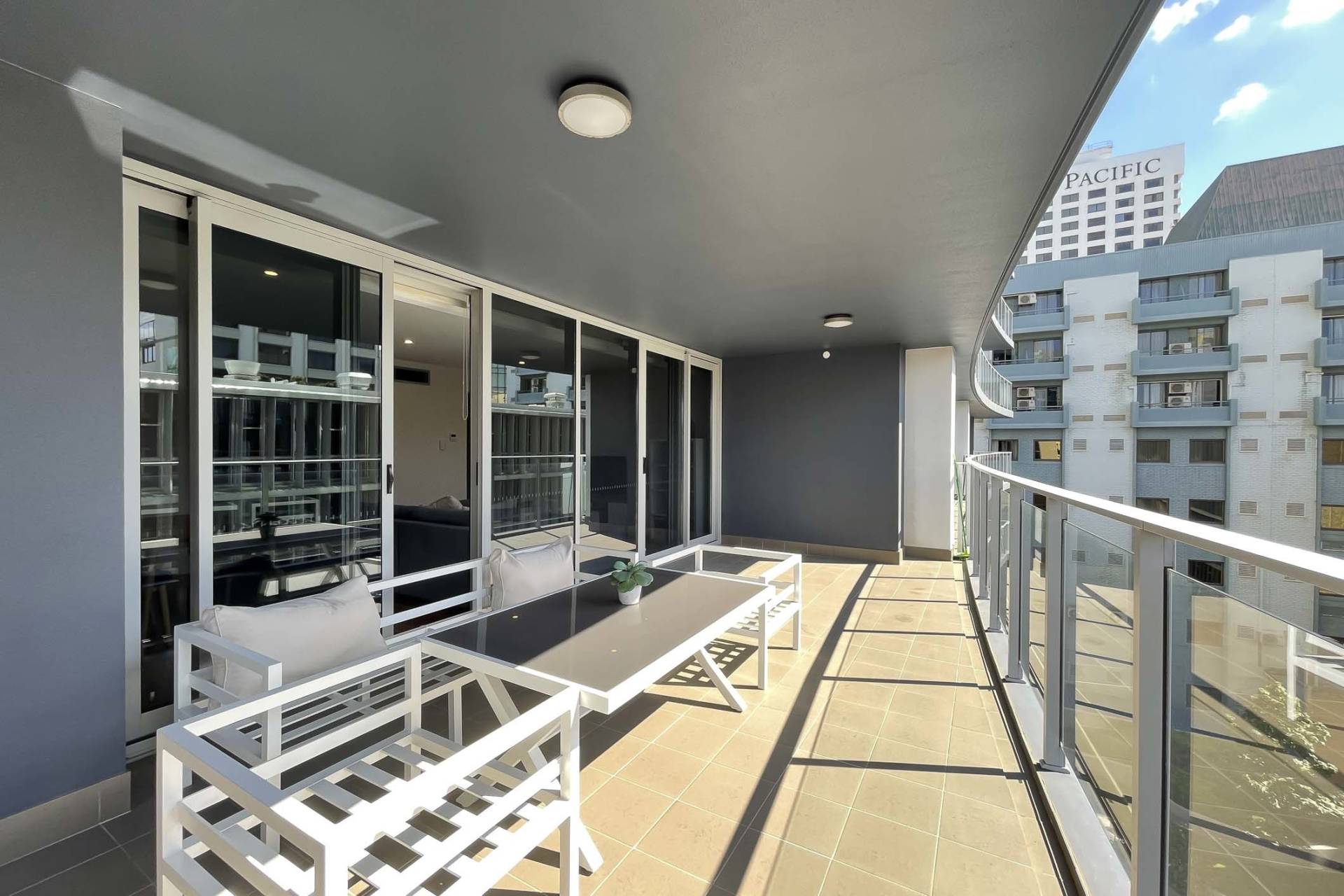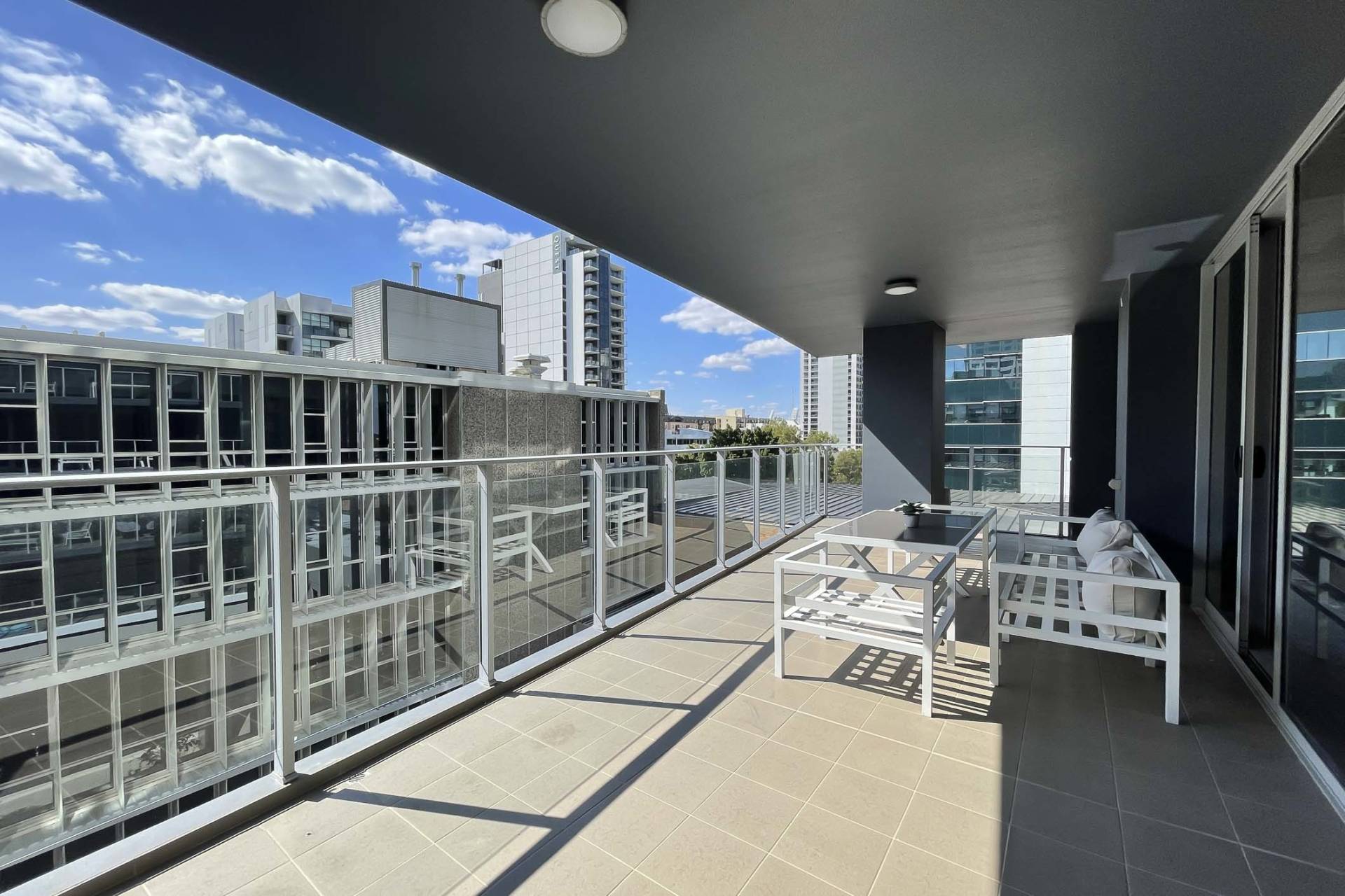 - Spacious balcony with outdoor lounge setting