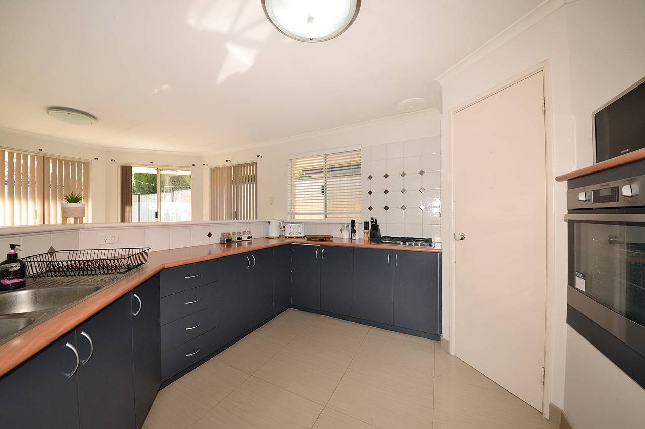 Good size kitchen with wall oven, gas hotplate, microwave recess and ample bench / cupboard space