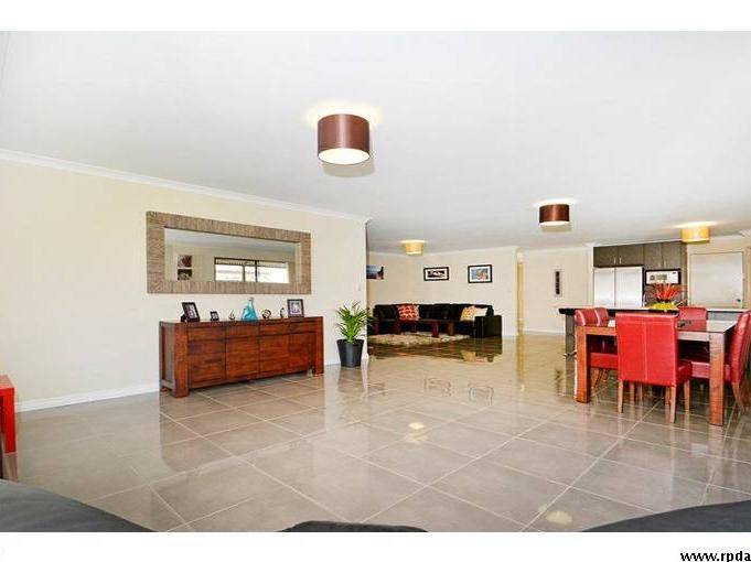 Massive open plan family/games/meals area with tiled flooring with 7.1kw reverse cycle air conditioning
