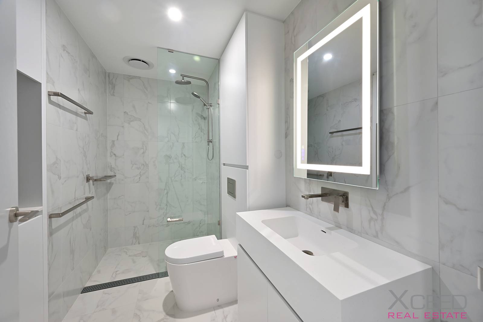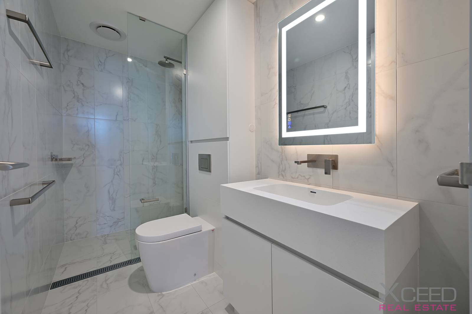Your own open plan living, and dining area links the fabulous balcony to a sleek and stylish kitchen with sparkling stone bench tops, double sinks and integrated modern electric cooking appliances. Both bathrooms are super stylish with walk-in rain showers, vanities, and toilets – including the private master en-suite. Both bedrooms have built-in wardrobes and remarkable views for you to wake up to every single day.