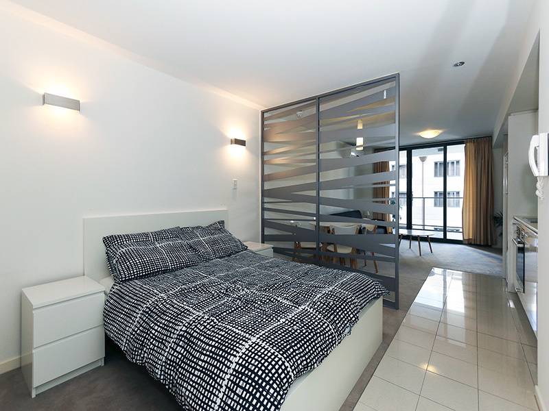 Perched high up on the 6th floor, the apartment itself is 40sqm internally with an 10sqm balcony, and boasts a modern fitted kitchen and bathroom ensuite, living area, and separated sleeping area. There is also one undercover parking bay, and a 4sqm private storage room.