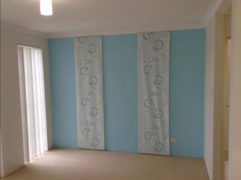 The formal lounge at the entry features beautiful white entertainment cabinets with inbuilt lighting, on a backdrop of textured wallpaper. This room also has a large sliding door opening to the tasteful front courtyard, with artificial turf with white pebbled edging. It also has a split system air conditioner with enough power to cool the main bedroom as well.