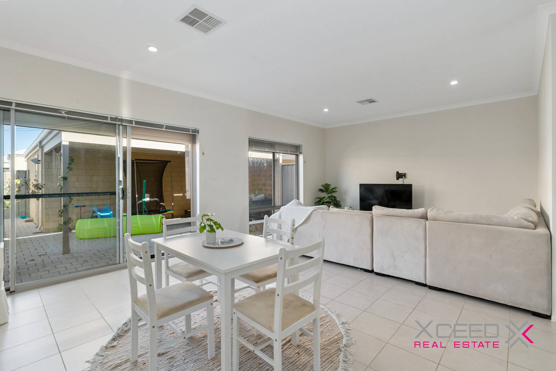 Minutes from Mindarie Marina, Clarkson Station and Somerley Primary School, this beautifully presented home occupies an easy-care 233sqm cottage block with rear laneway access. The property is bright and fresh, with light-filled tiled living spaces and spacious bedrooms with built-in robes.