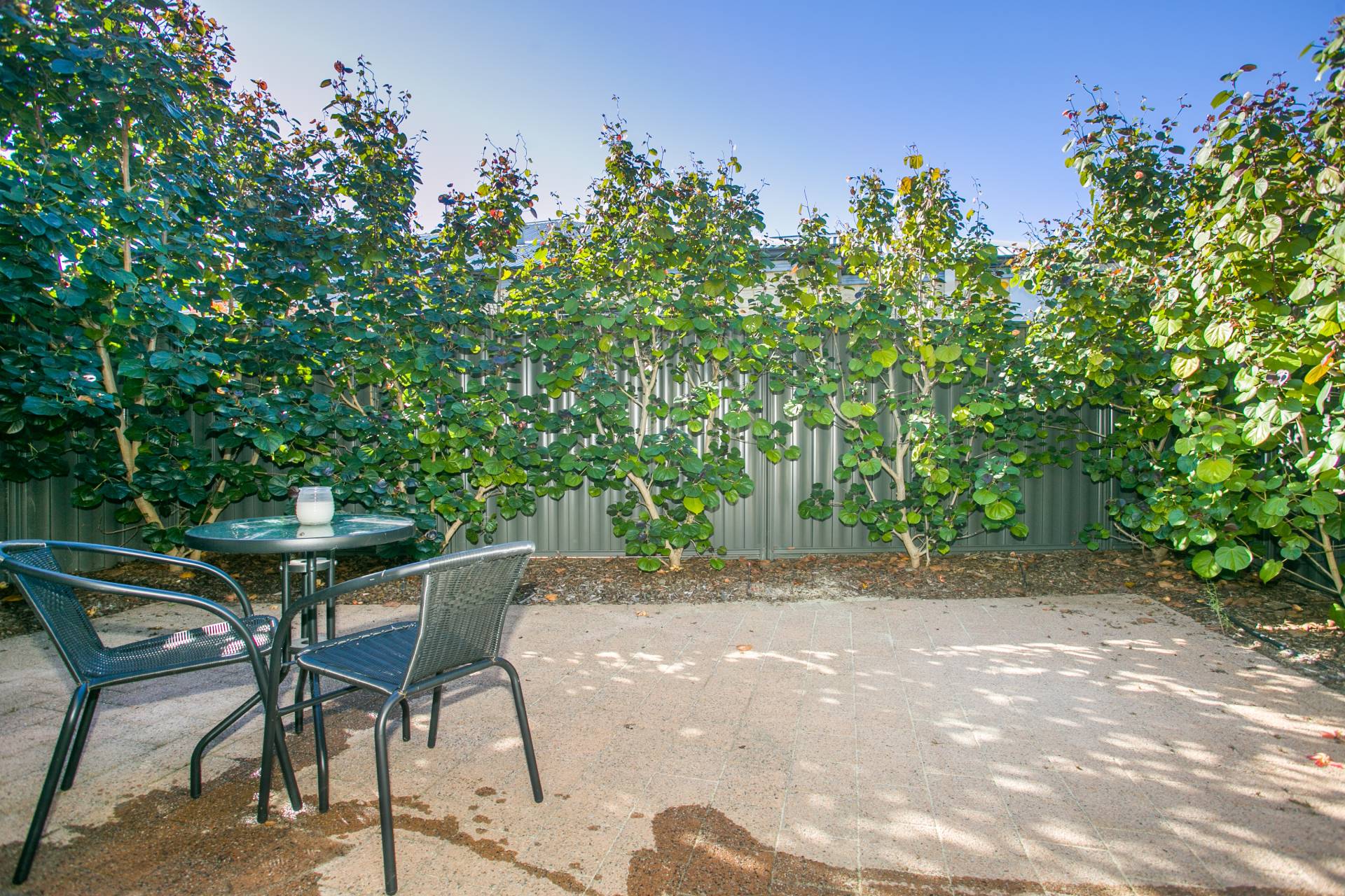 Beyond the attractive rendered brick and iron roof elevation, oak-effect vinyl plank flooring flows throughout the living, dining and traffic areas, with carpets to the bedrooms. The spacious master bedroom offers triple mirrored sliding robes and a well-equipped ensuite with a shower, vanity and WC. The double-sized minor bedrooms also have built-in robes, and all three include ceiling fans.