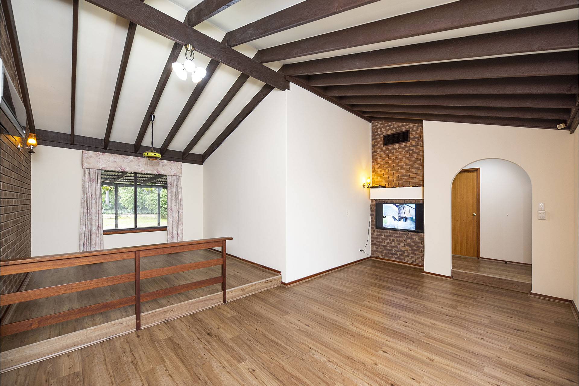 The entire home has been freshly painted, with new timber laminate flooring to the bedrooms and living areas. Soaring raked ceilings with exposed beams create beautiful spaciousness and, together with timber window sills and door frames, are features rarely seen in modern builds.