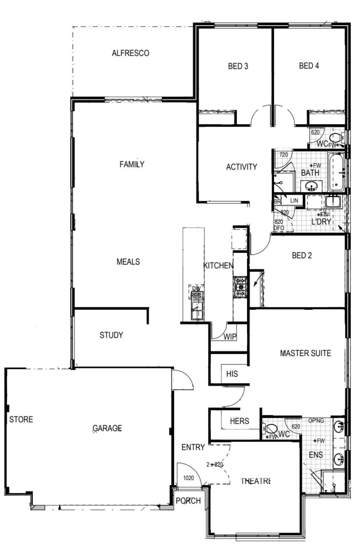 A modern 4 x 2 family home including spacious open plan meals and living, separate enclosed home theatre, study/home office as well as a kids activity room.