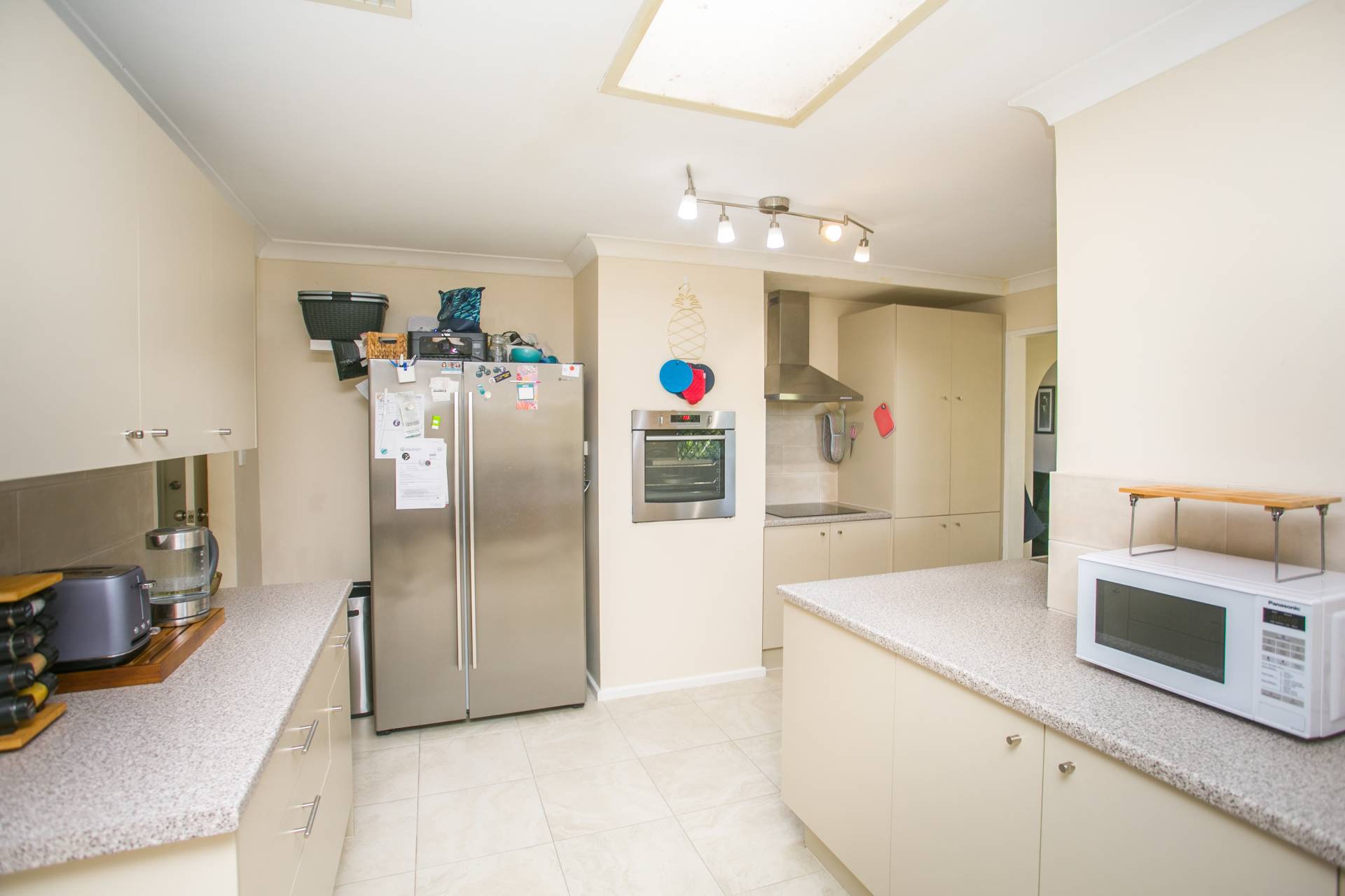 Thoughtfully updated for convenience and style, the kitchen has plenty of bench and cupboard space, as well as a canopy rangehood, electric cooktop and dishwasher. Easily able to accommodate a double fridge, the kitchen is functional and well-appointed.