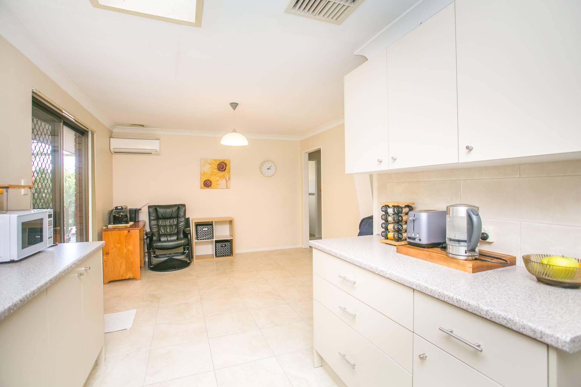 A room off the kitchen can be used as desired to suit your family, as a dining room or second living room. Split-system air-conditioning will keep you comfortable year-round.
