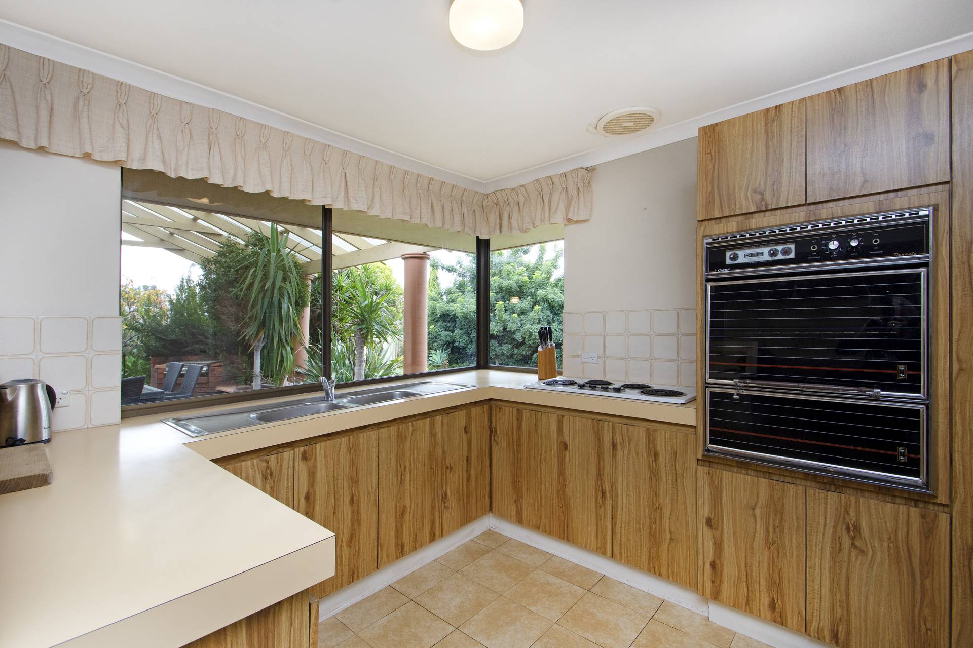 • Original kitchen (in need of updating) overlooking entertaining area