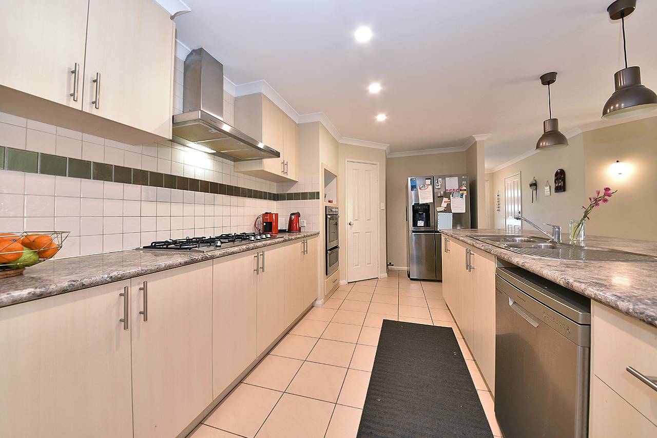 Central kitchen with twin ovens, extra large cooktop, rangehood, dishwasher and tonnes of bench / cupboard space