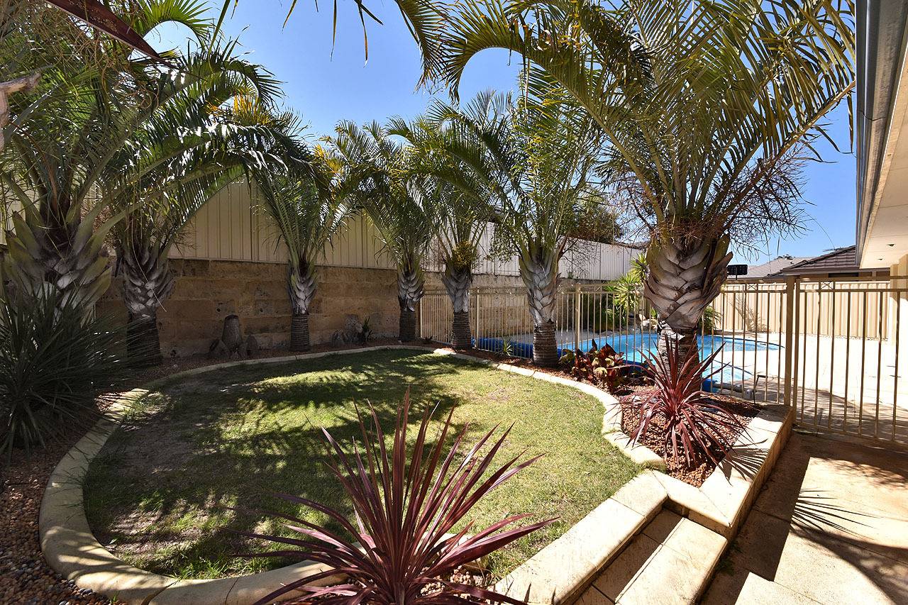 Pitched patio area and alfresco, all overlooking manicured gardens, poured limestone and a fully fenced below ground pool