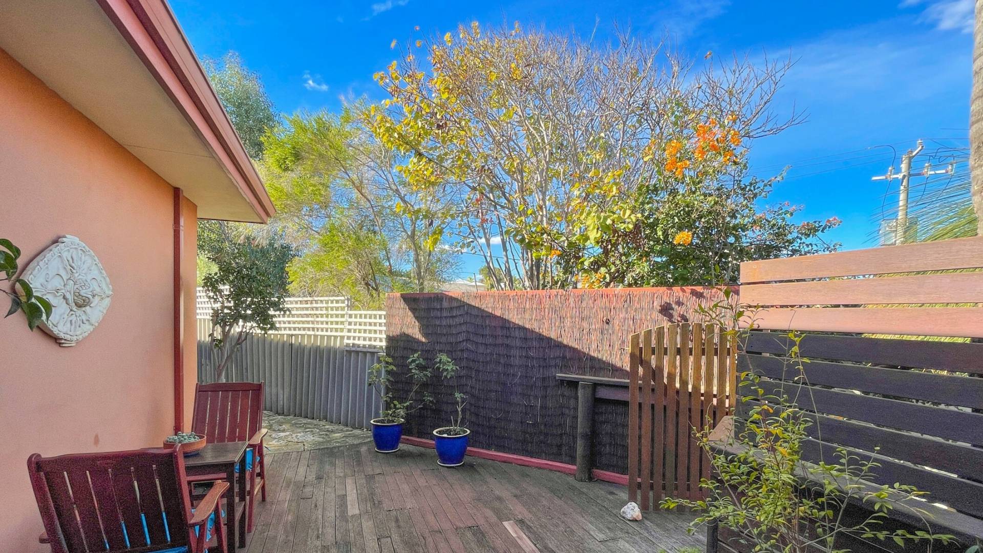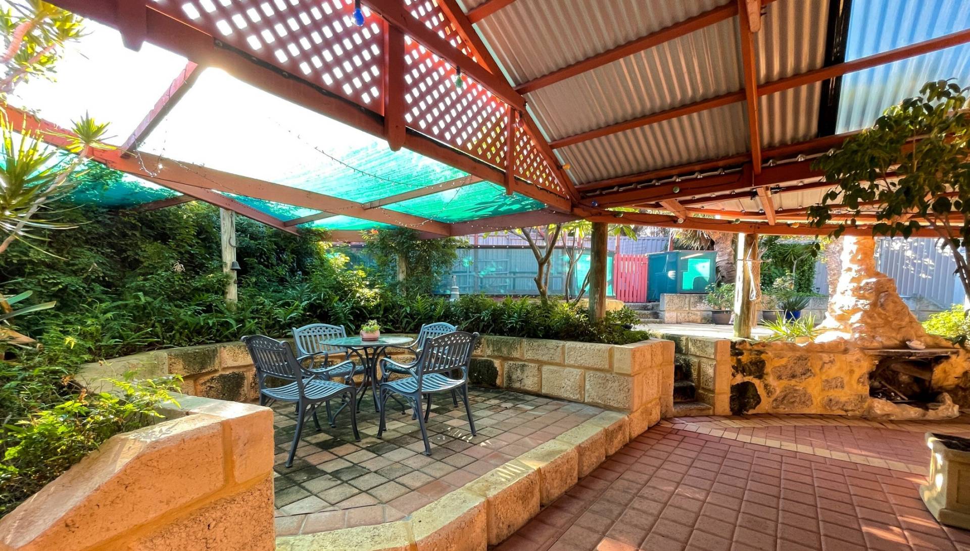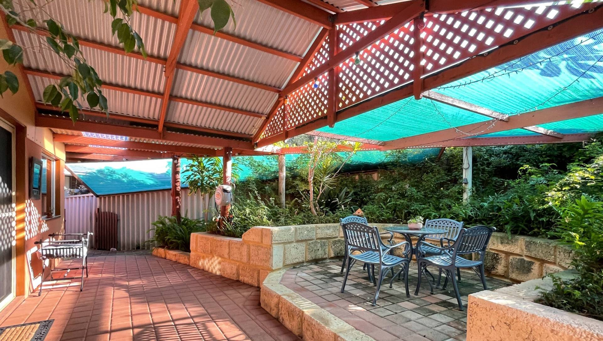 Separate hidden garden deck for sitting and relaxing Private backyard with lush green lawns and a garden shed Large covered carport – or additional entertaining area – off the second driveway Enough overall parking for up to five cars, a boat and a caravan