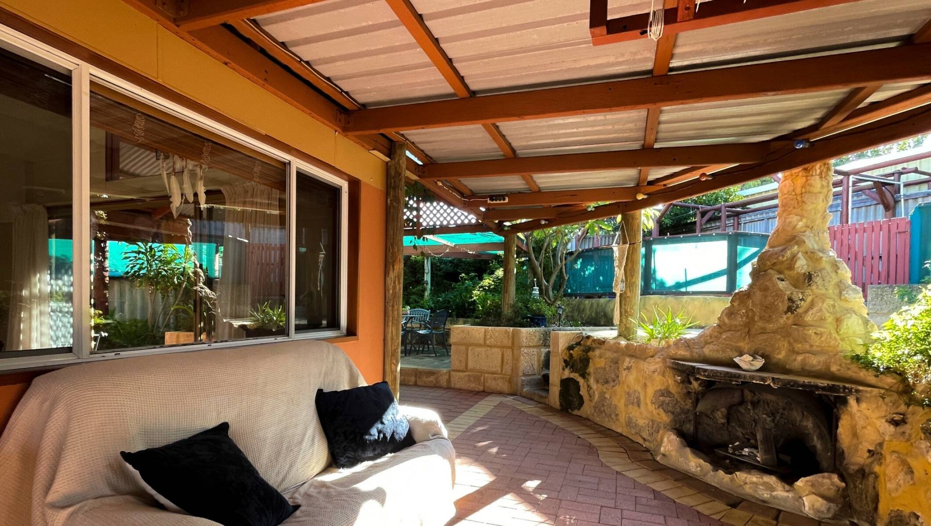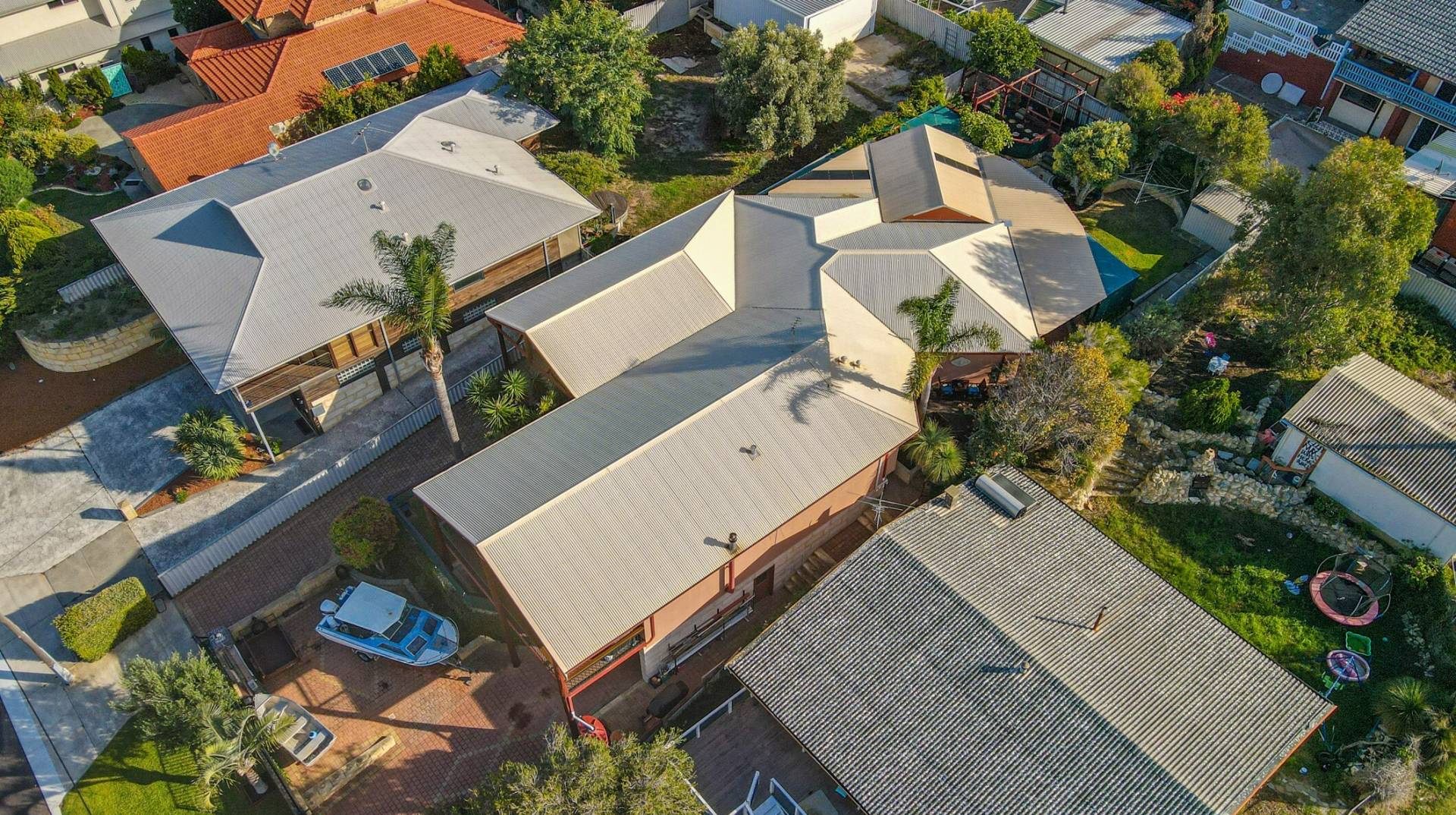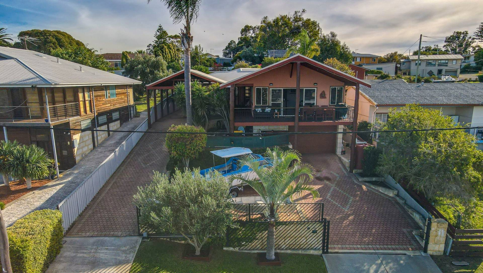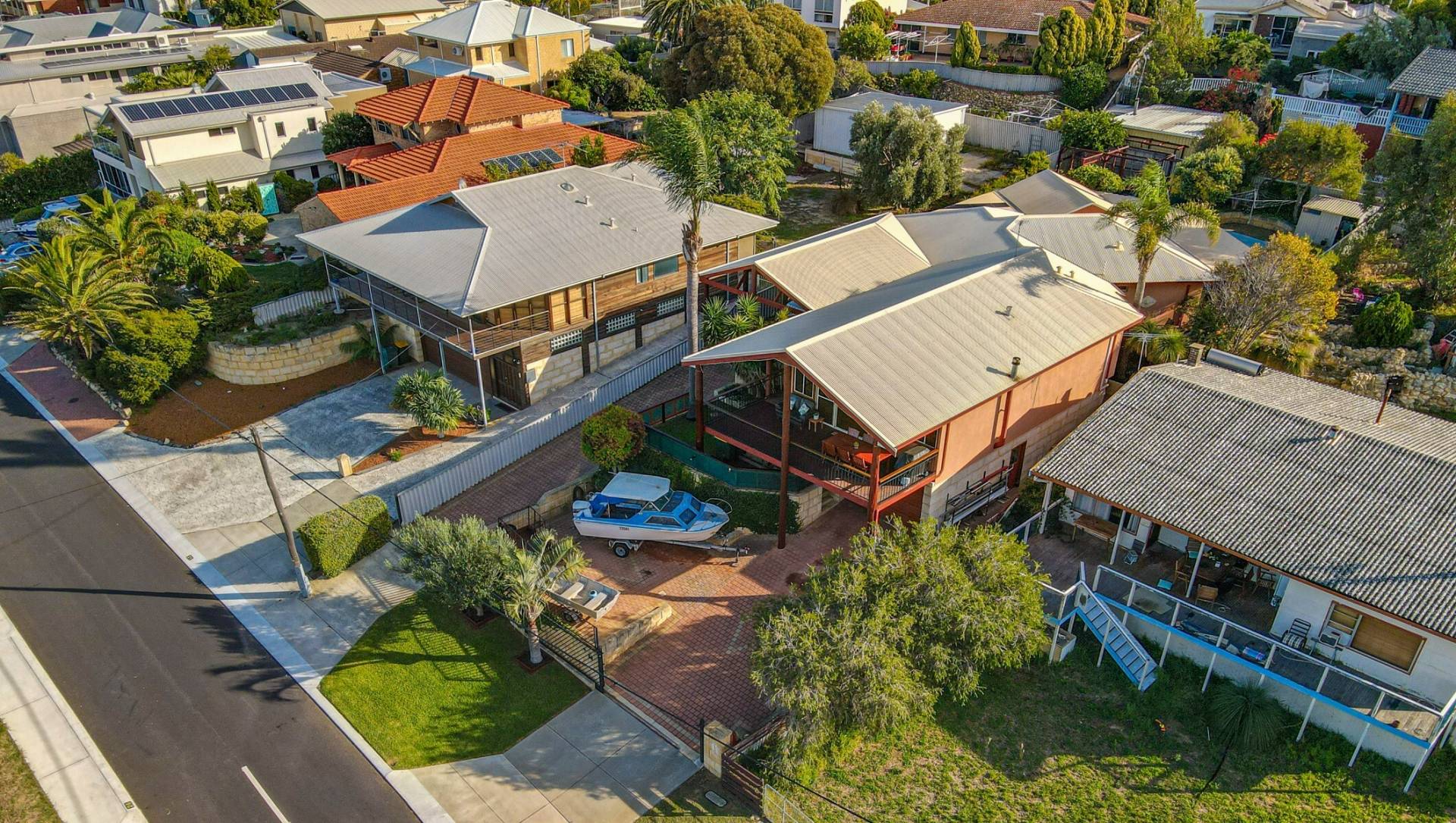 Separate hidden garden deck for sitting and relaxing Private backyard with lush green lawns and a garden shed Large covered carport – or additional entertaining area – off the second driveway Enough overall parking for up to five cars, a boat and a caravan
