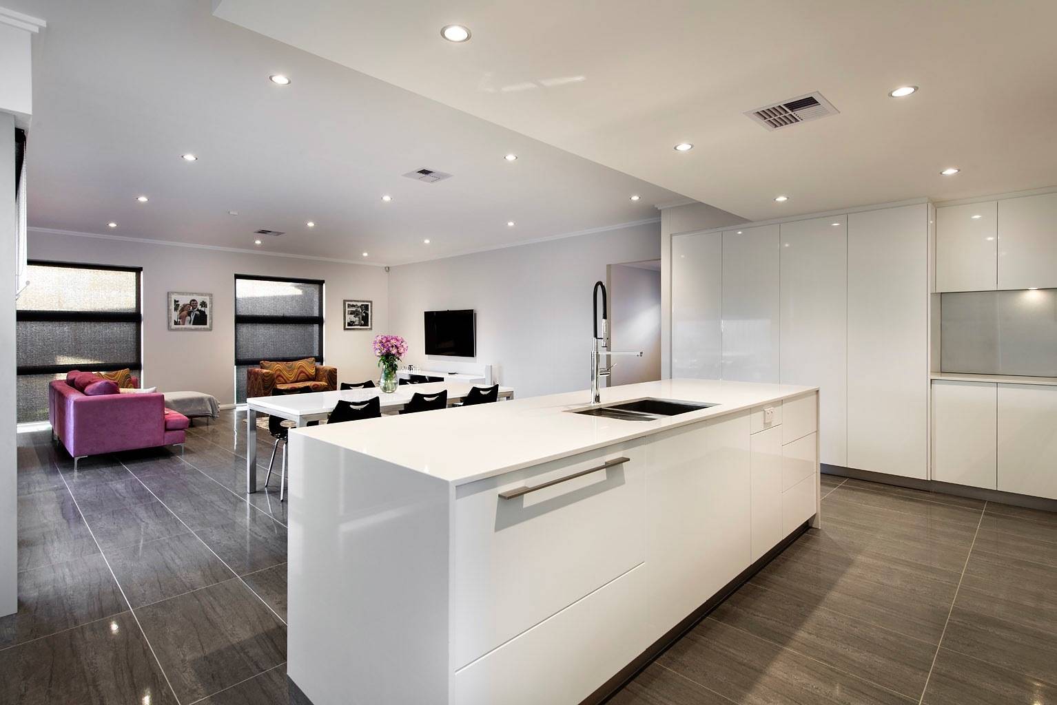 The extensive Waterfall stone bench top kitchen features an abundance of soft close doors and drawers, 4 door pantry and top quality appliances. From here a wide open plan dining and family living area flows seamlessly to the all weather and sheltered alfresco with low maintenance pavers overlooking the private garden and lawn area.