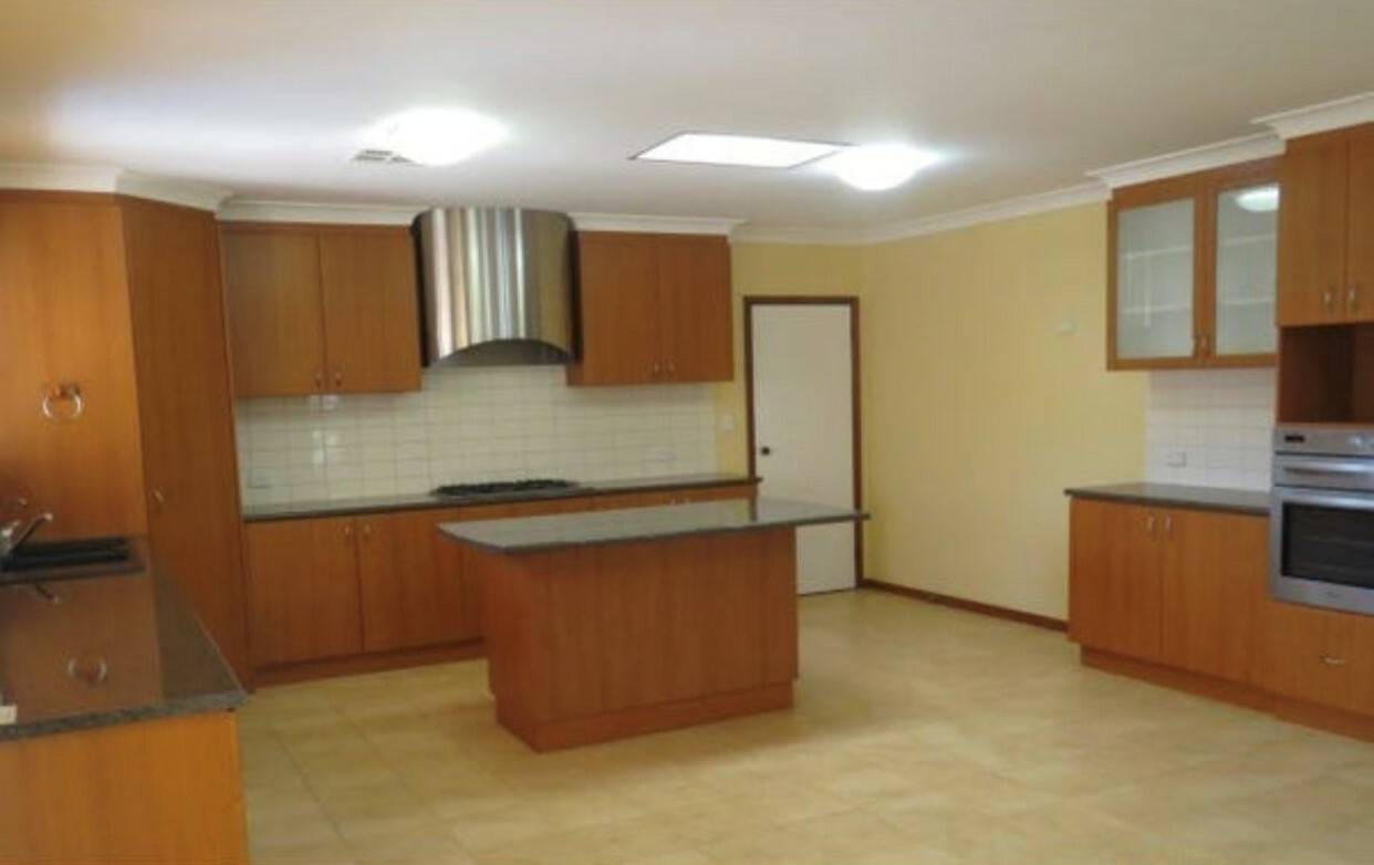 Large open plan kitchen and family room, lots of bench and cupboard space with modern laminate timber