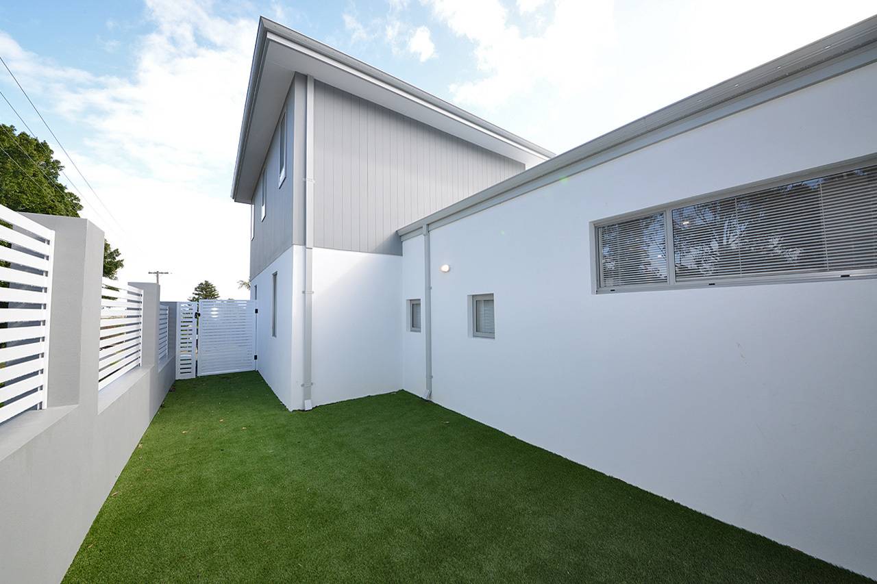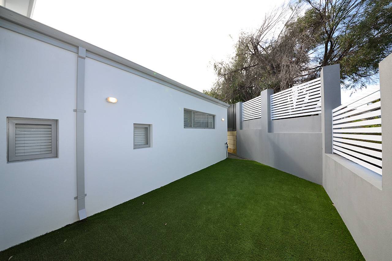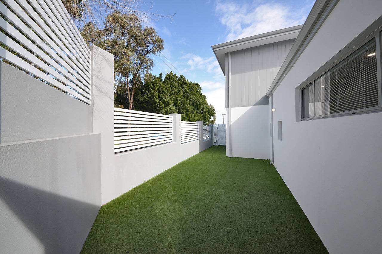 Alfresco courtyard (UMR) with easycare gardens as well as separate synthetic lawn area