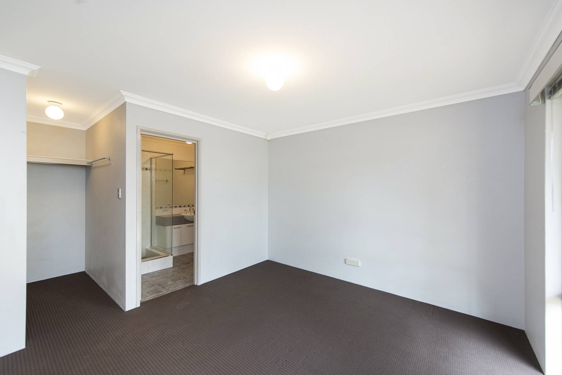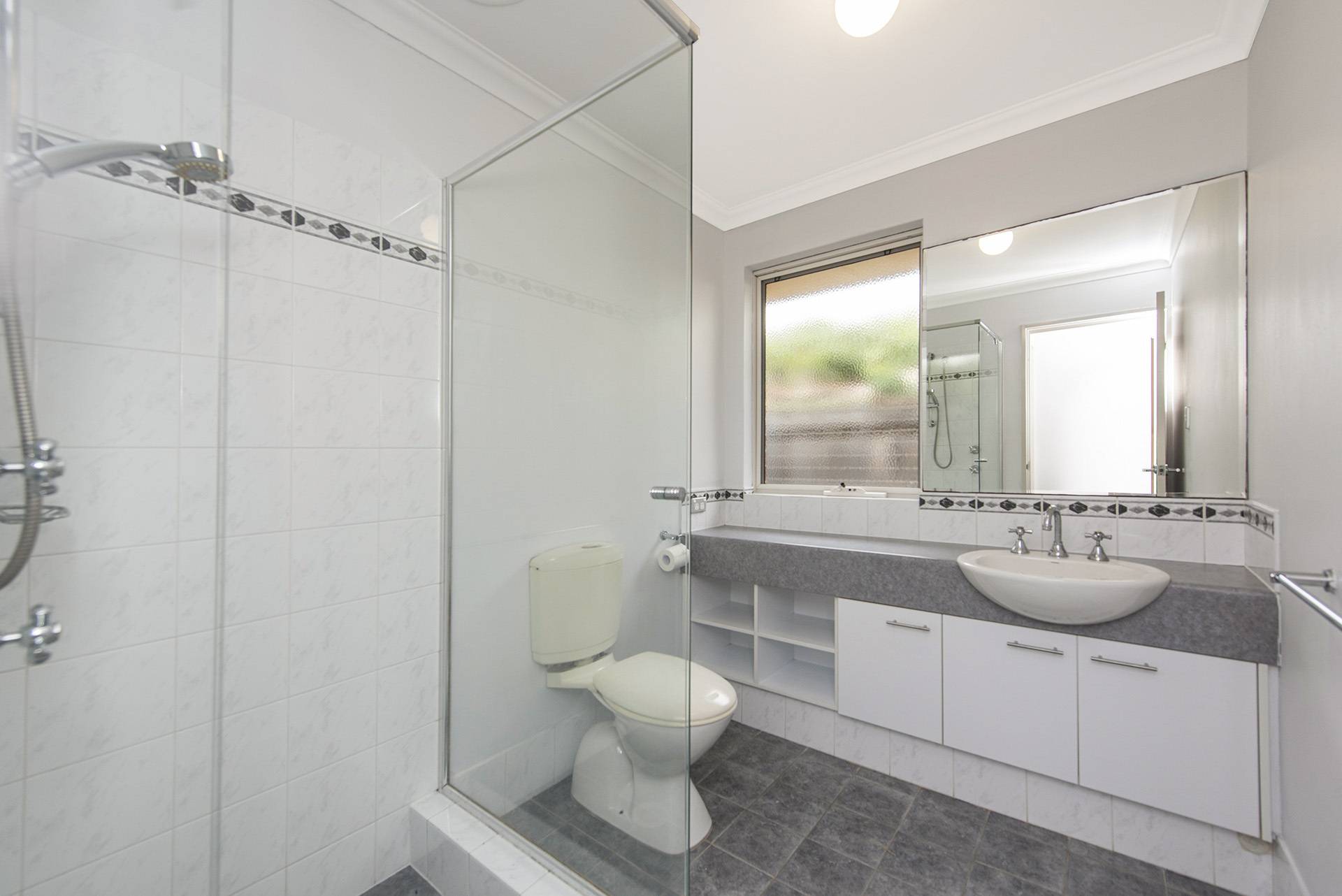 The master bedroom is complete with blinds and a spacious walk-in robe. A semi-frameless shower with removable showerhead, semi-recessed basin and WC can be found in the ensuite.