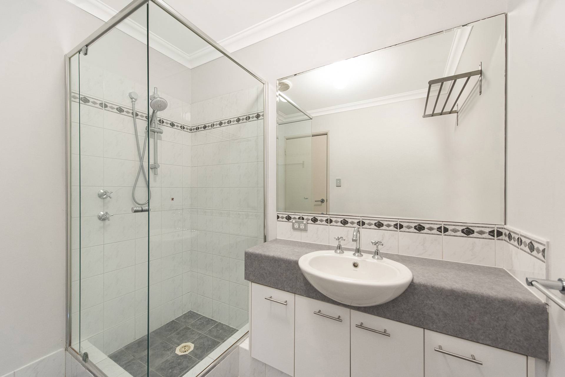Both minor bedrooms feature a single robe and neat white vertical blinds. The family bathroom includes a semi-frameless shower, long vanity with single basin and plenty of cabinet space for the kids’ accessories.
