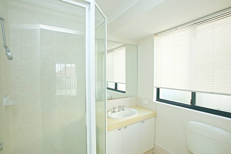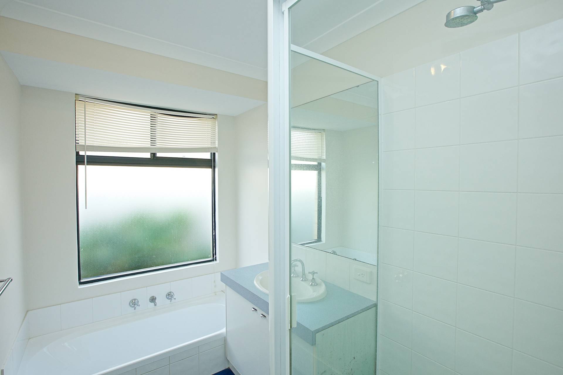 Light and bright 2nd bathroom with bath and shower with glass screen