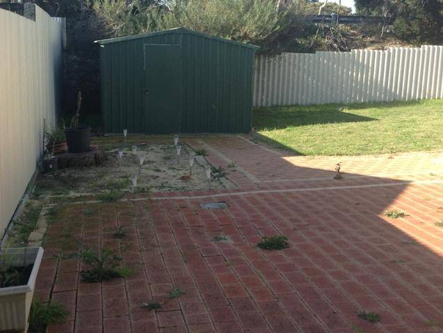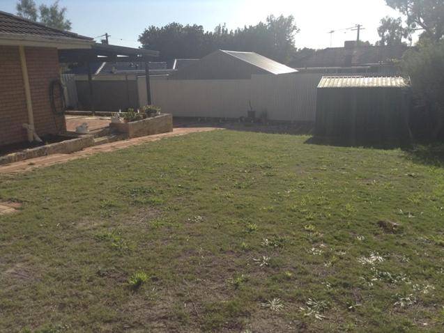 Paved areas and grass areas to backyard