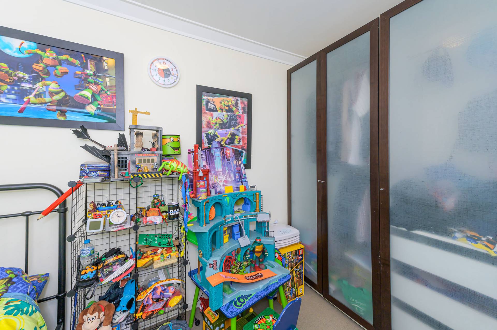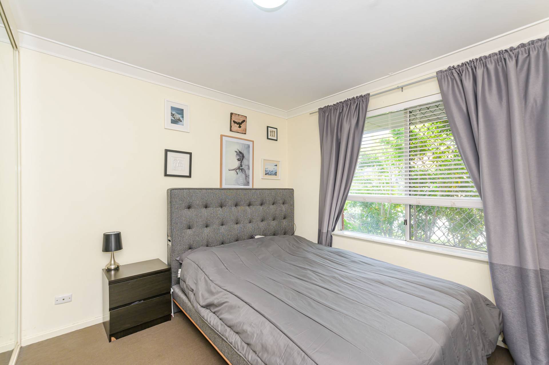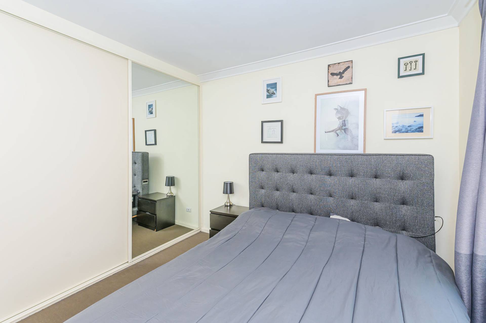 With a double sliding robe to the main bedroom, there is no shortage of clothes storage. A large window allows natural light to pour in, finished with white venetian blinds and curtains. The generous second bedroom features a large robe with customised cabinetry.