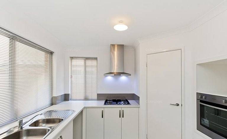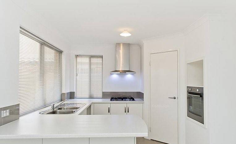 - Modern kitchen, with space for a dishwasher, stainless steel range-hood, oven and cook top