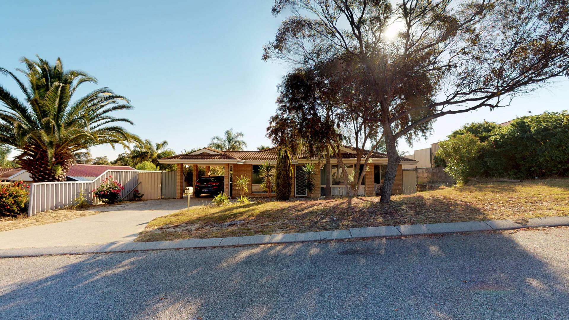 - Single car carport with extra parking for more cars in driveway