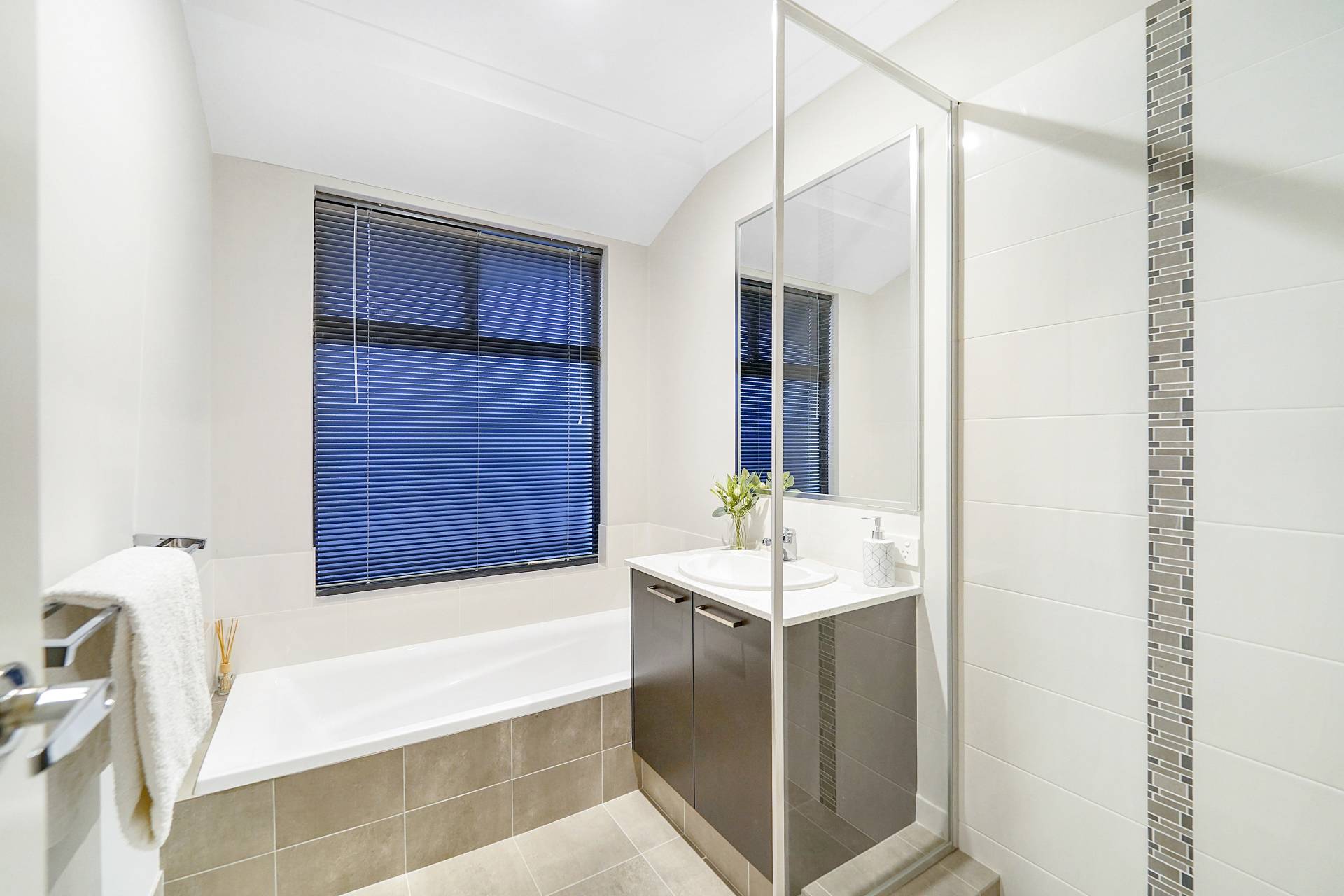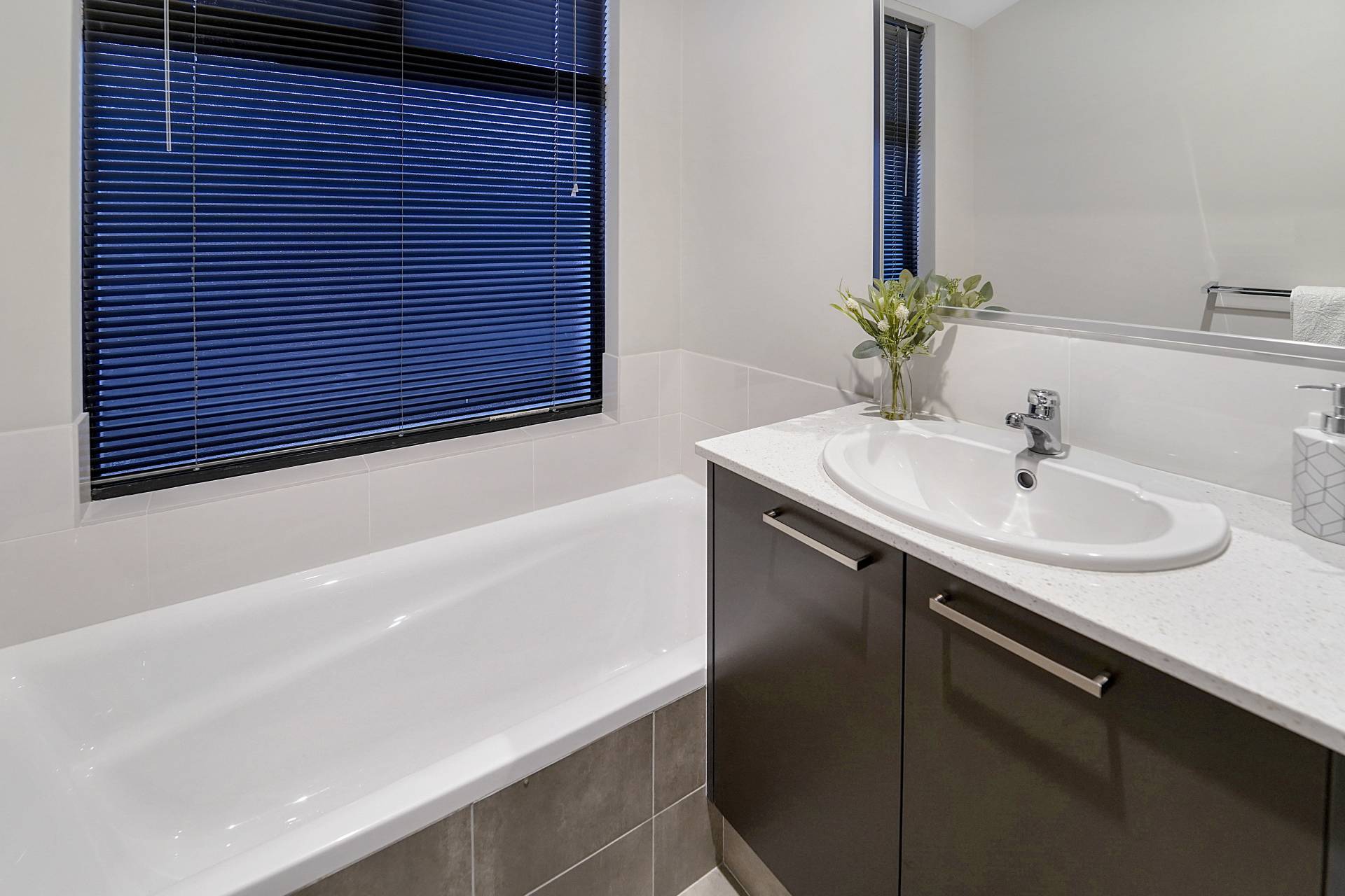 Each of the minor bedrooms feature double mirrored robes, and will accommodate the kids as they grow with room for study desks. The family bathroom includes a bathtub, single vanity and shower, all in neutral tones.