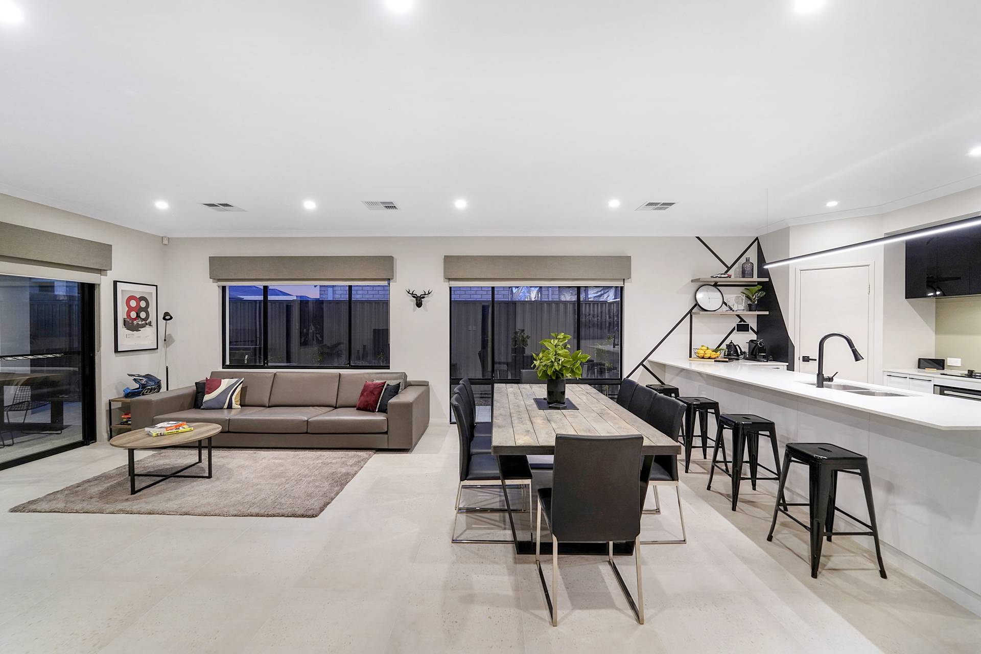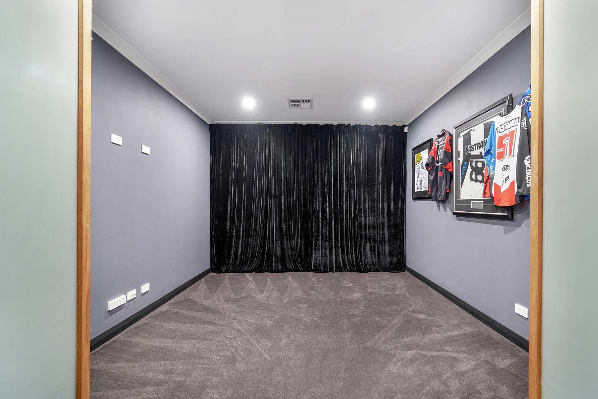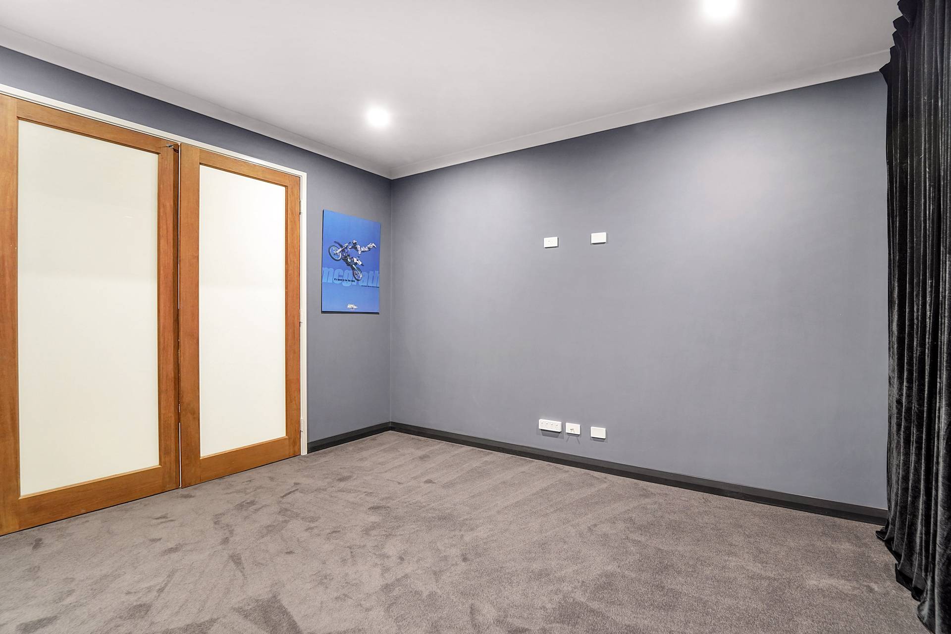 Blackout curtains and double timber doors create a welcoming atmosphere in the separate theatre, the perfect space for family movies nights or a retreat for the teenagers. Utilise the study as a home office, playroom or library to suit your needs. The open lounge and dining area offers excellent potential as the main living zone of the home. Natural light pours in through large windows and double sliding doors leading to the alfresco.