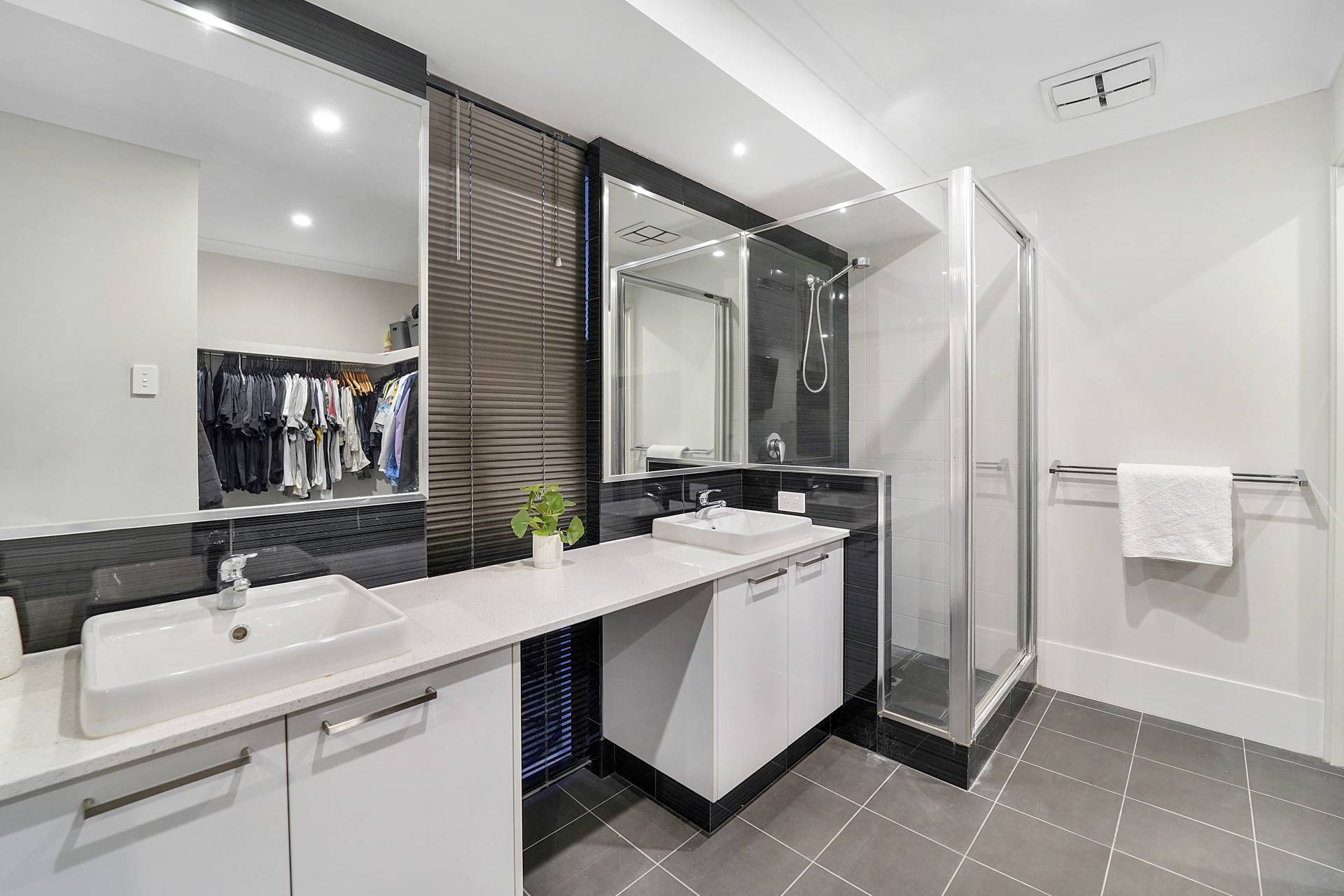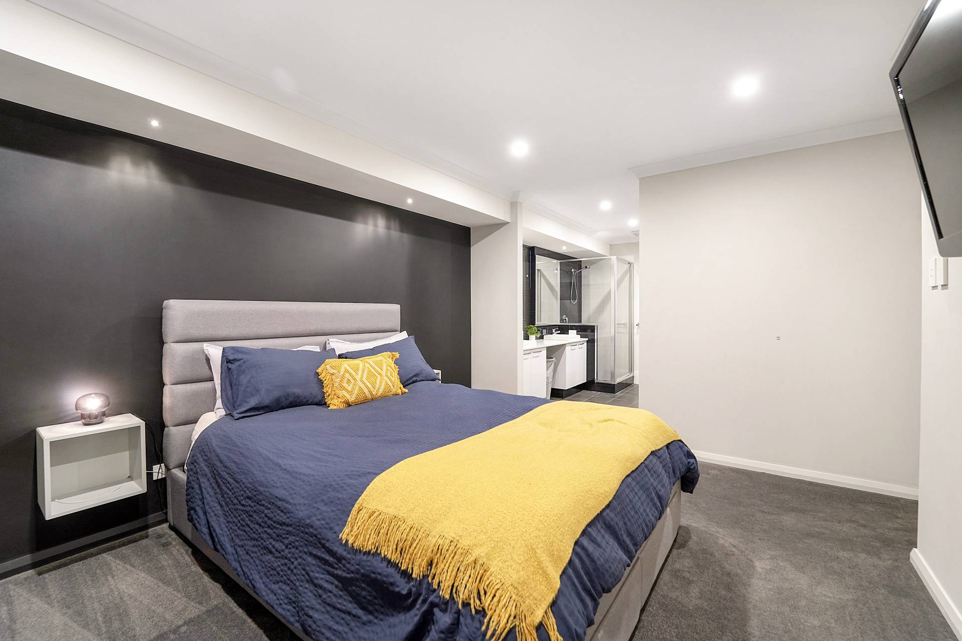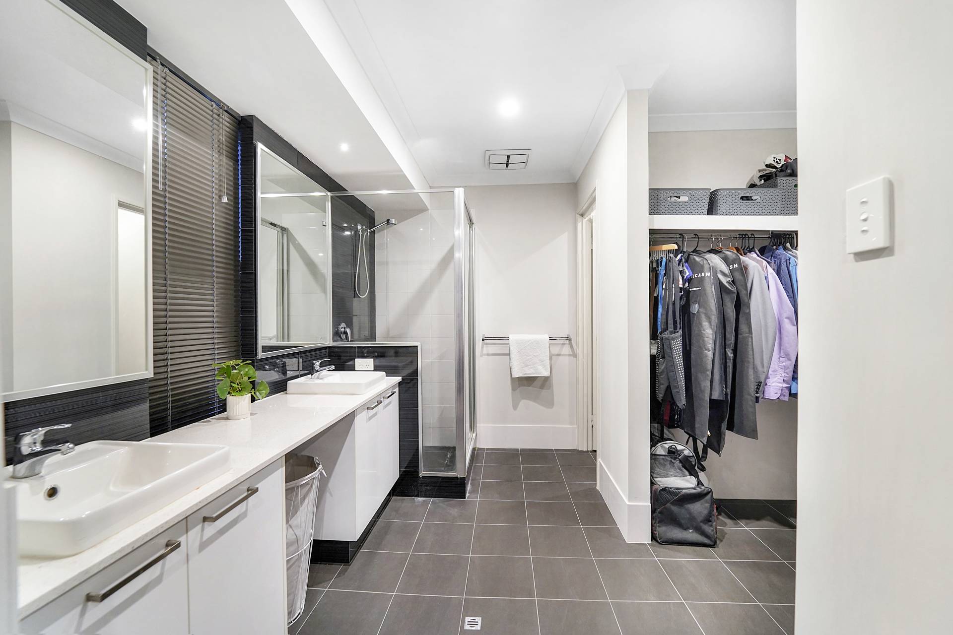 With a recessed wall and downlights adding to the feeling of spaciousness, the master bedroom is an inviting escape for the adults. A generous walk-in robe offers plenty of room for clothes storage. The ensuite has been gracefully designed with his and her basins, under-bench cabinetry, shower and a separate WC.
