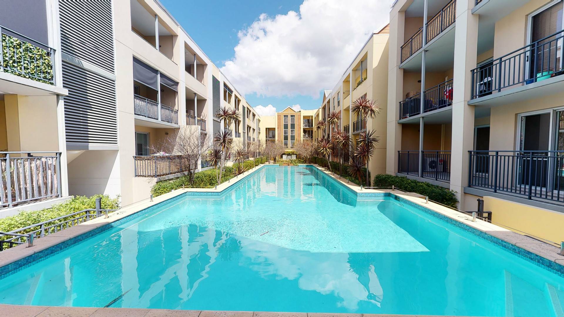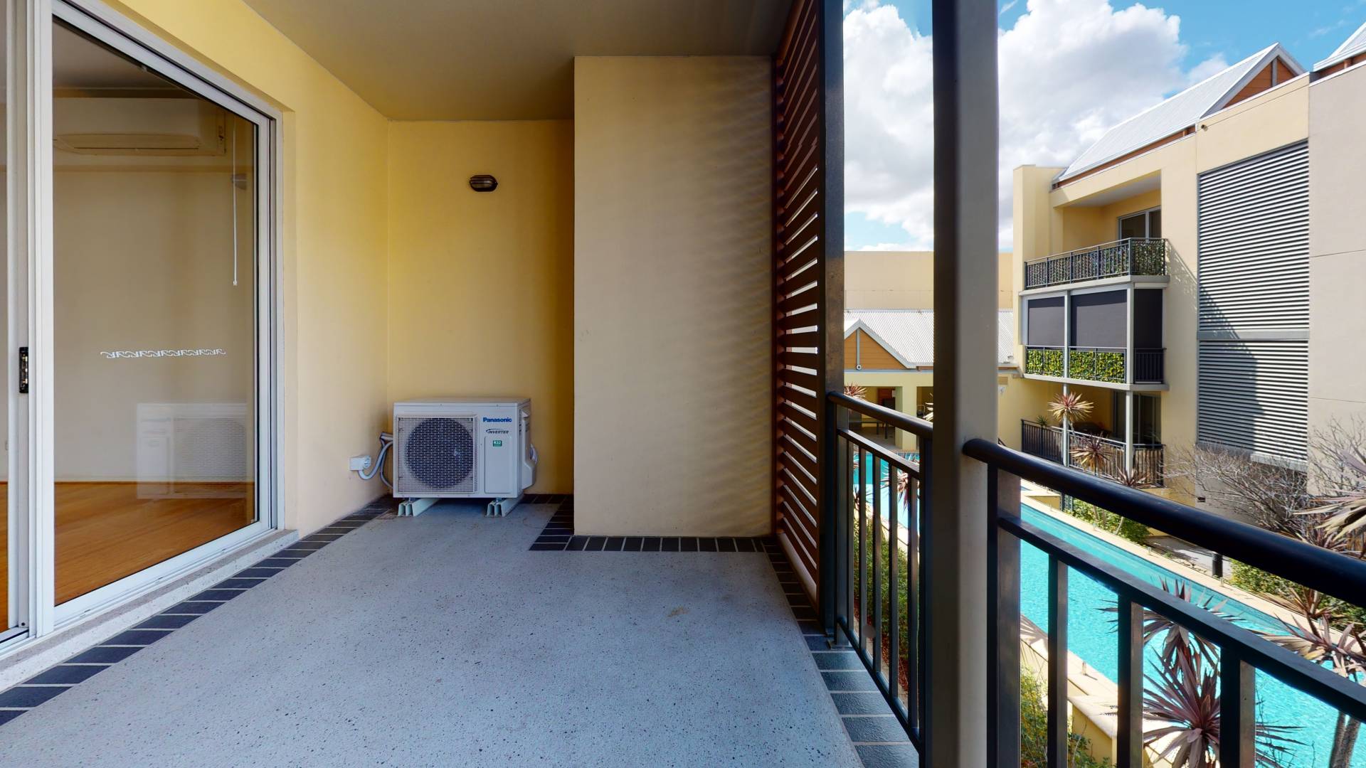 The balcony overlooks the pool area & the complex has easy access to freeways, transport and the CBD.