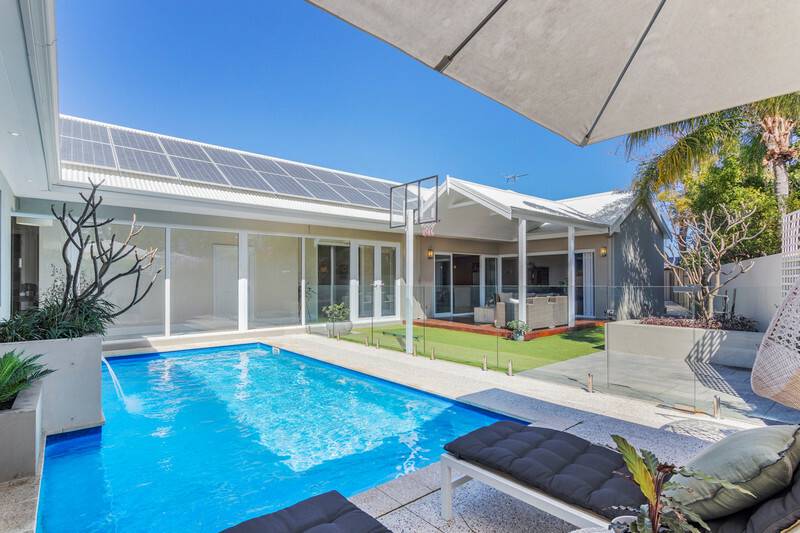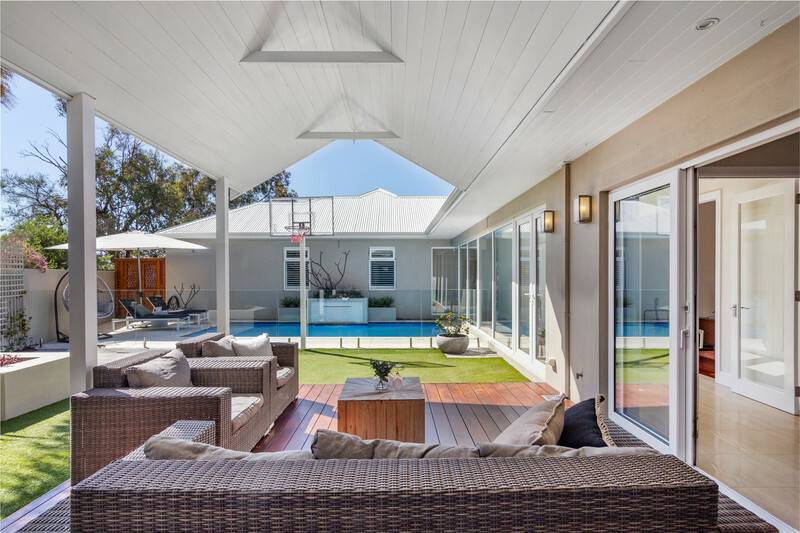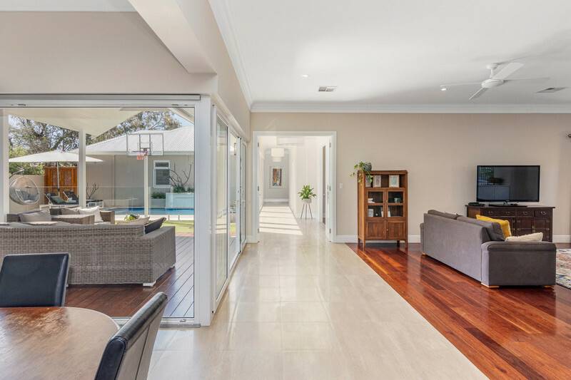 The heart of the home is a high end fully equipped stone-top & Siemens kitchen set within a huge open plan dining and living room overlooking and opening onto both East and North West facing entertaining areas including the sparkling pool-perfect for keeping a watchful eye on children swimming. Additionally, there is a separate activity or music room adjoining the main living allowing for large gatherings of family and friends to relax in comfort.
