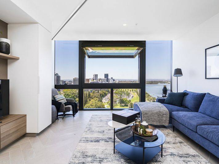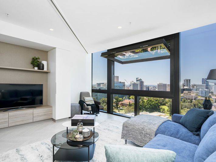 Boasting stunning views of The Bell Tower, The Swan River & Stirling Gardens.