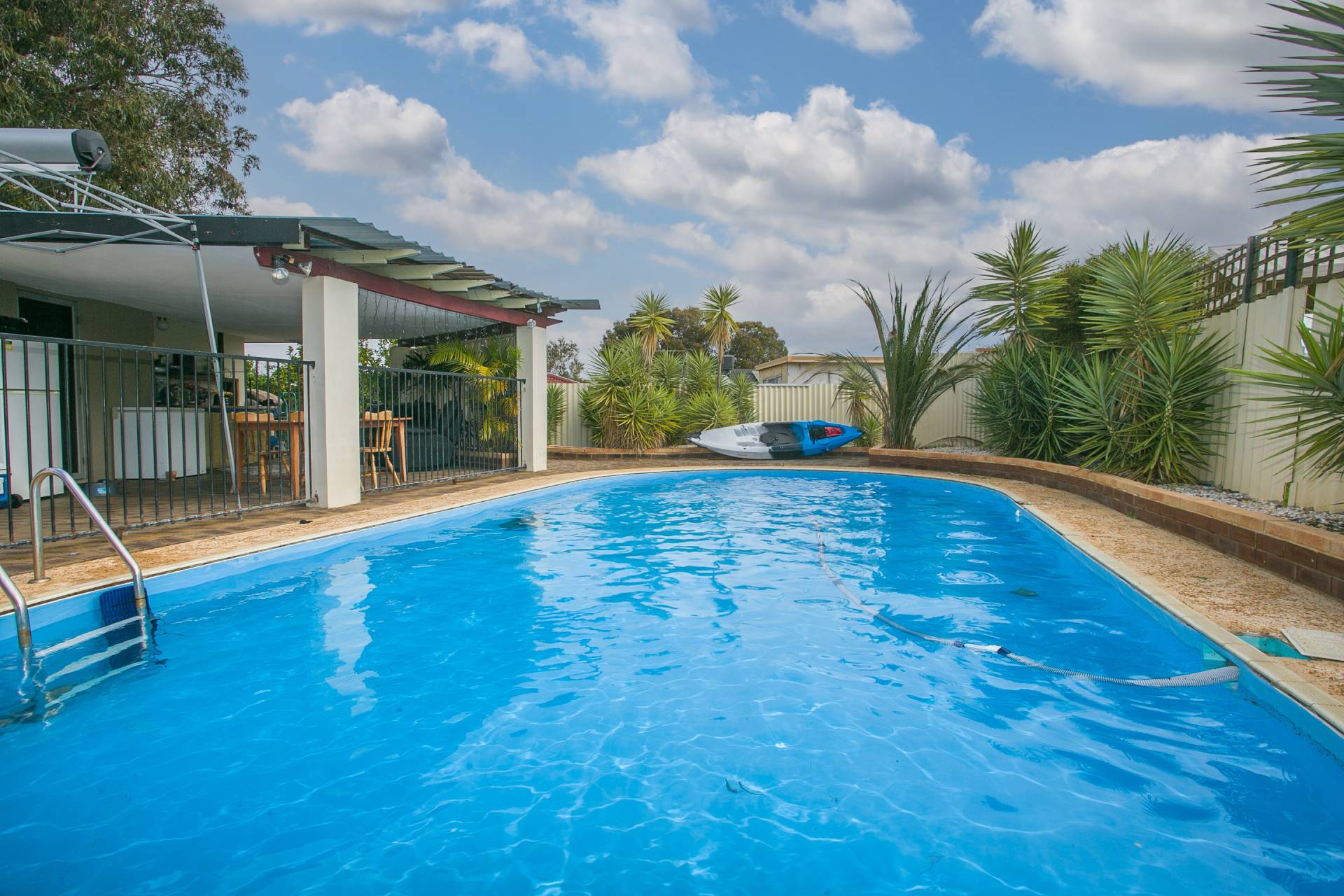 • Fully fenced below-ground salt-water pool