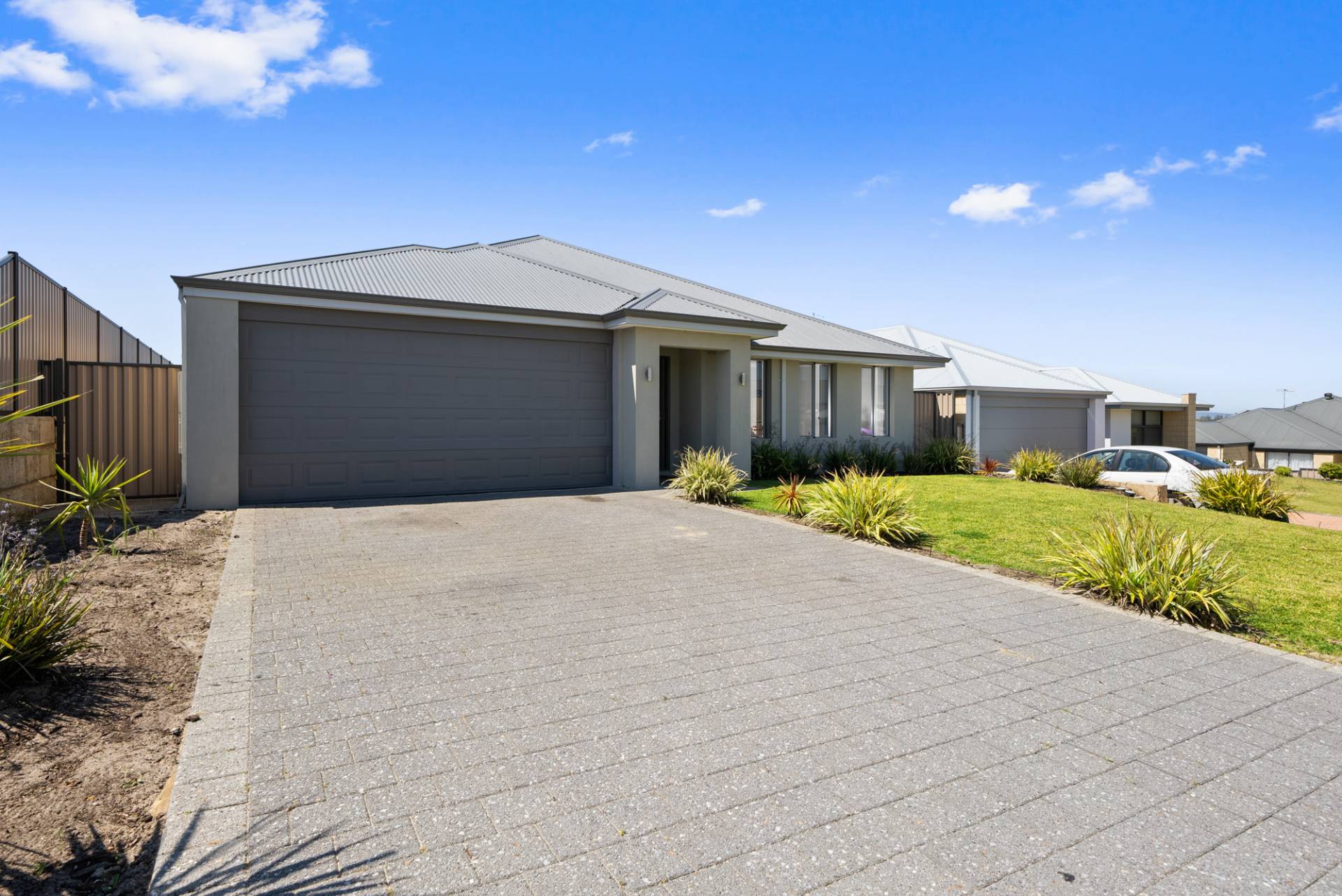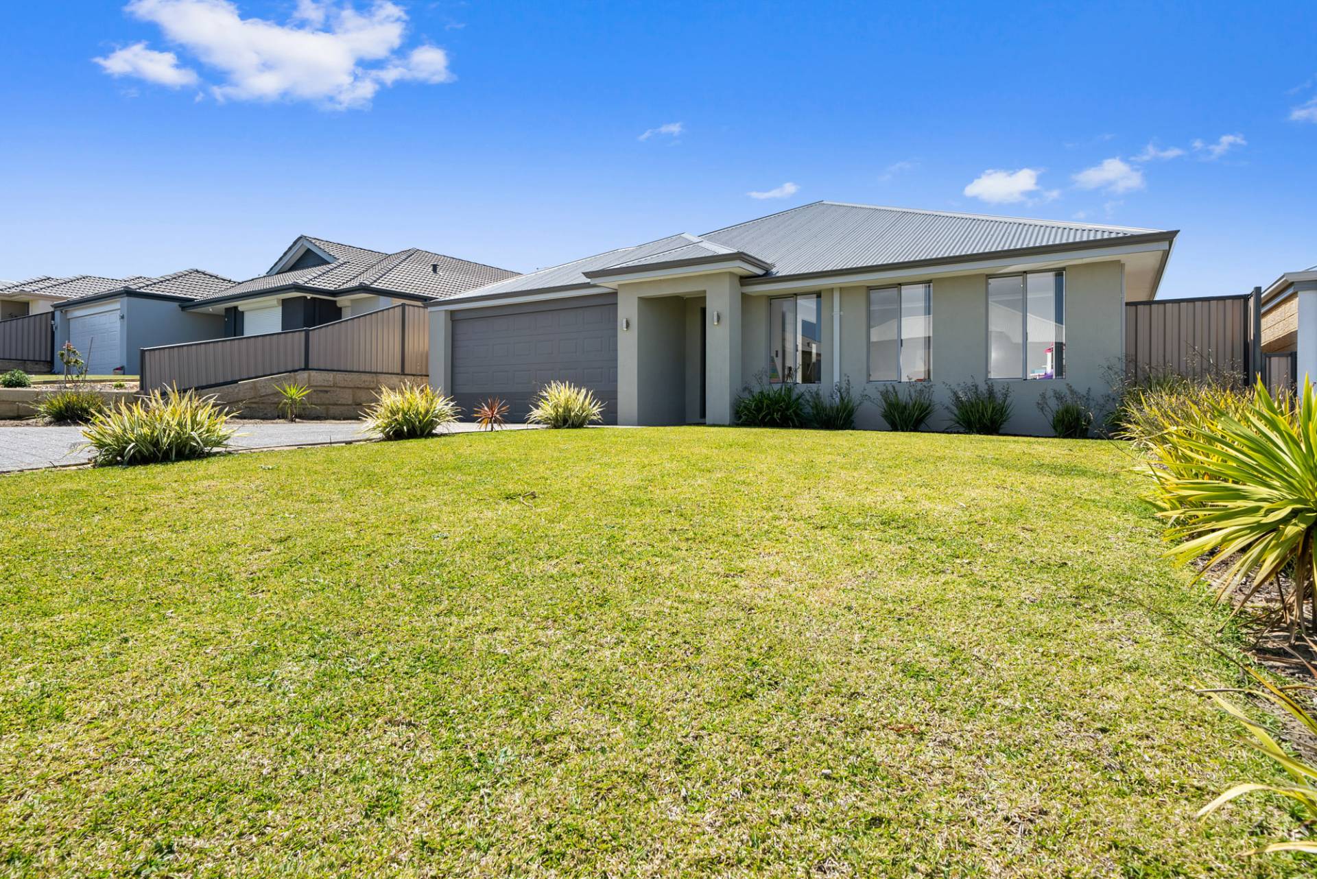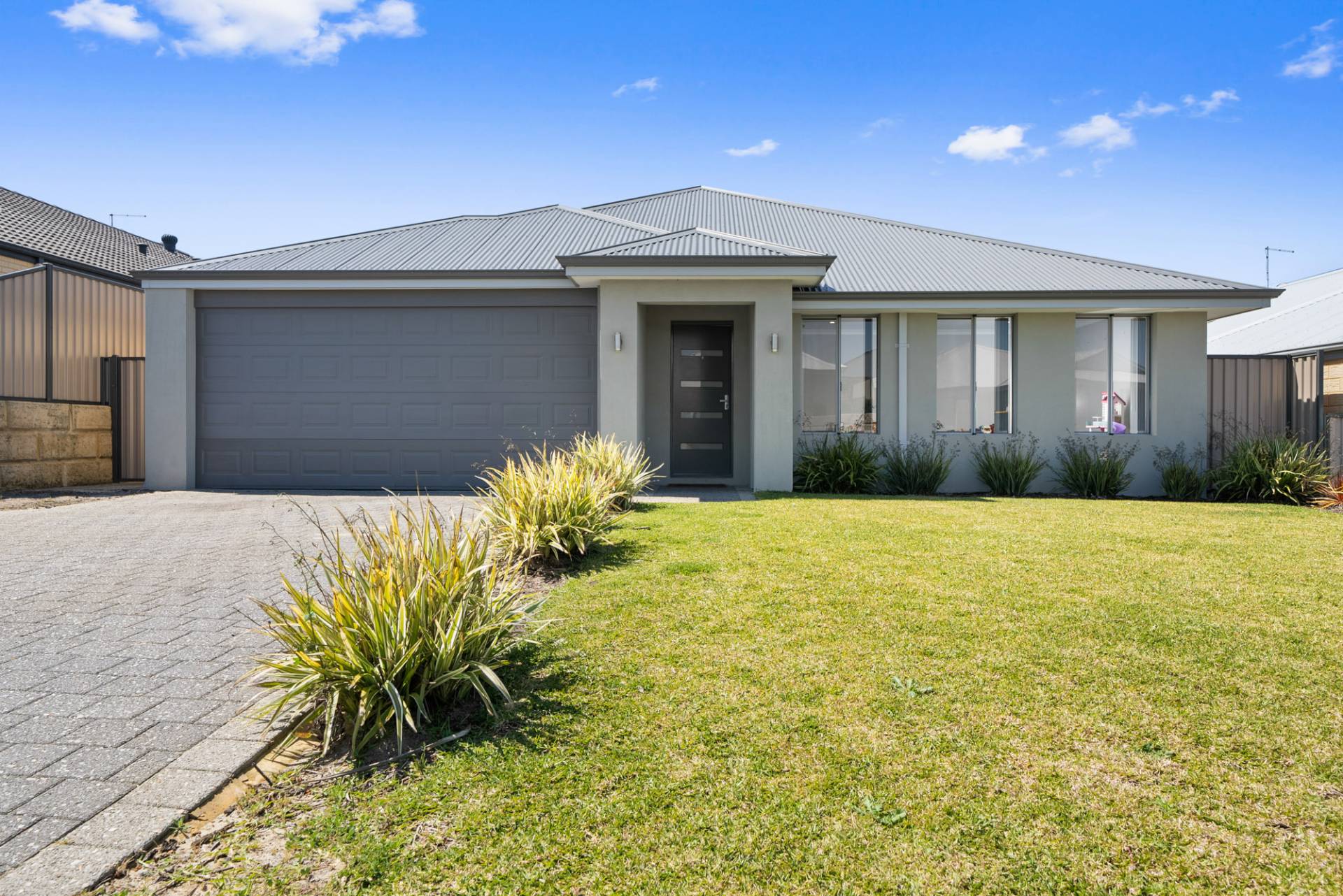 Rendered brick with Colorbond roof and double lock-up garage