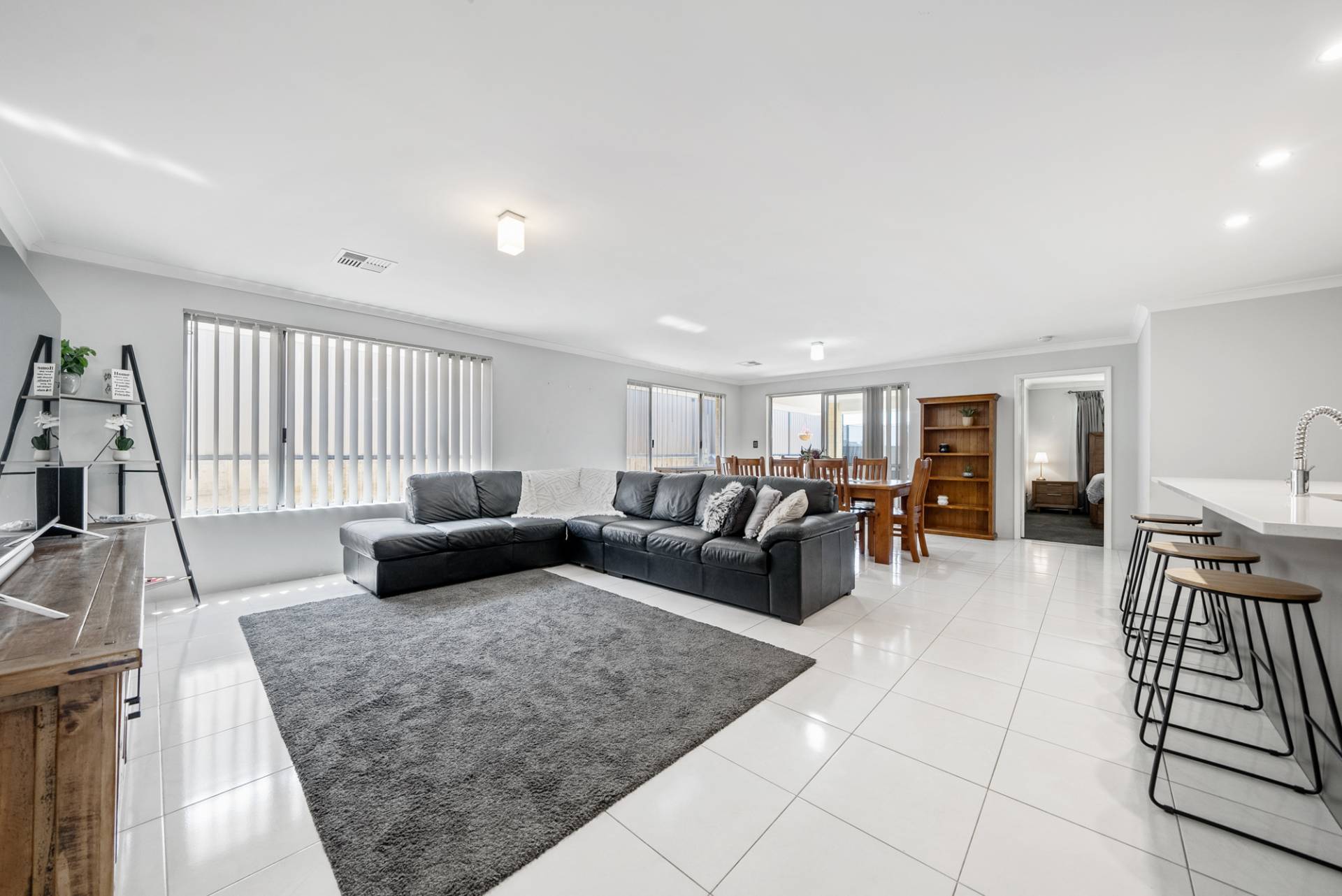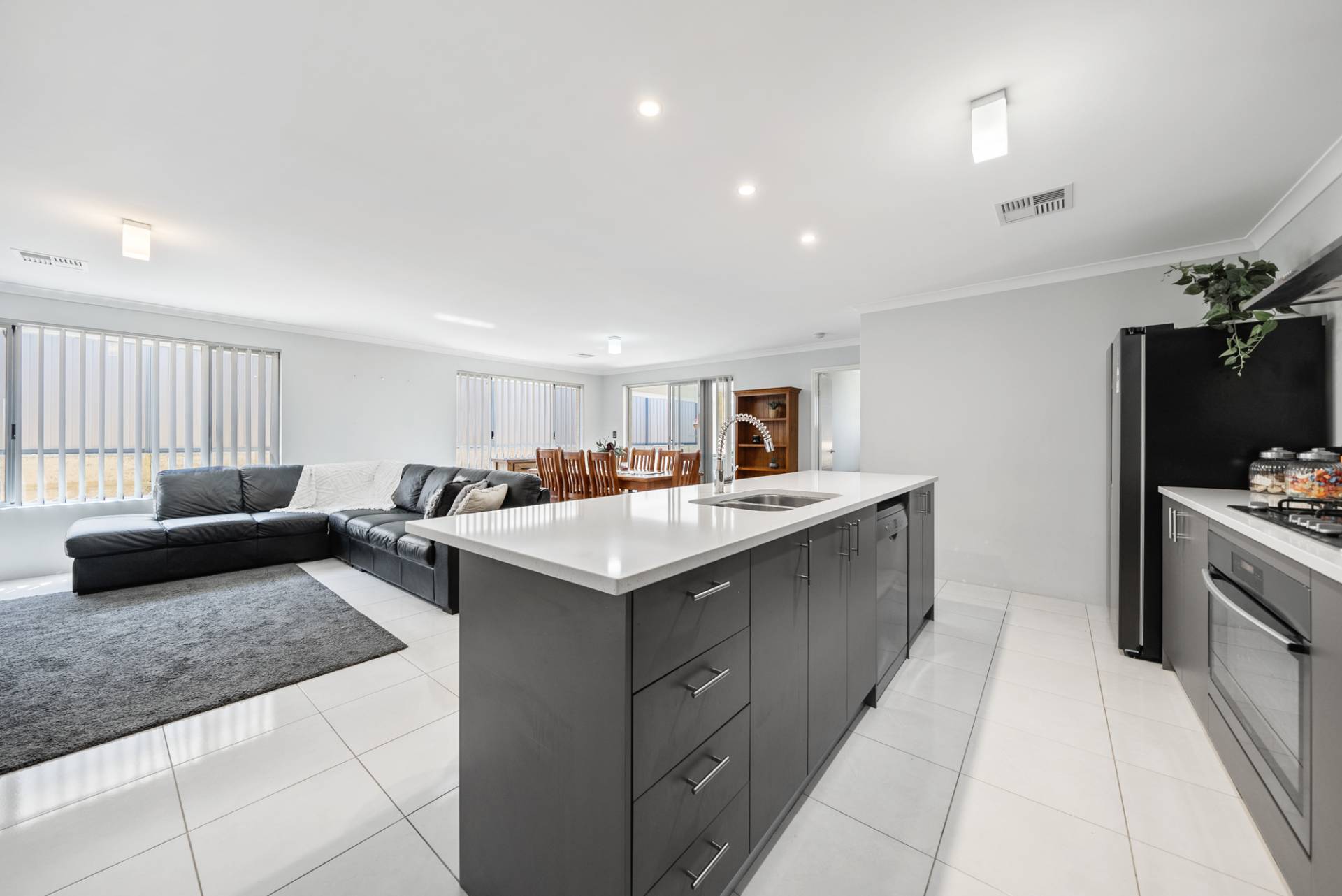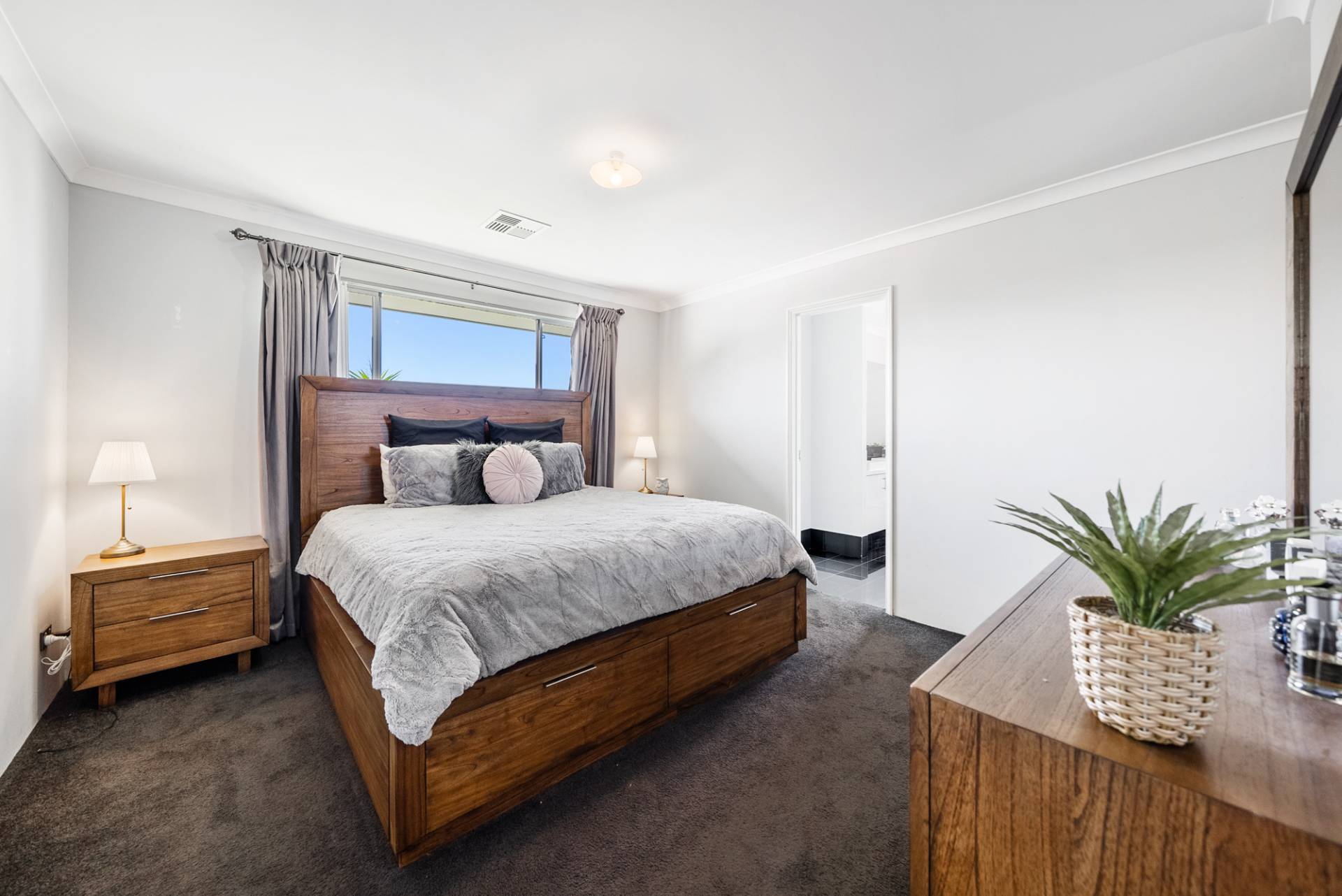 Three queen-sized bedrooms offer built-in double mirrored robes, carpets and vertical blinds, while the luxe master suite comprises a roomy walk-in robe and a beautifully designed ensuite bathroom with double vanities and double shower.