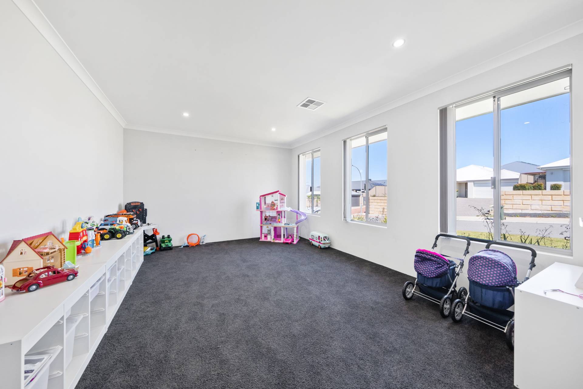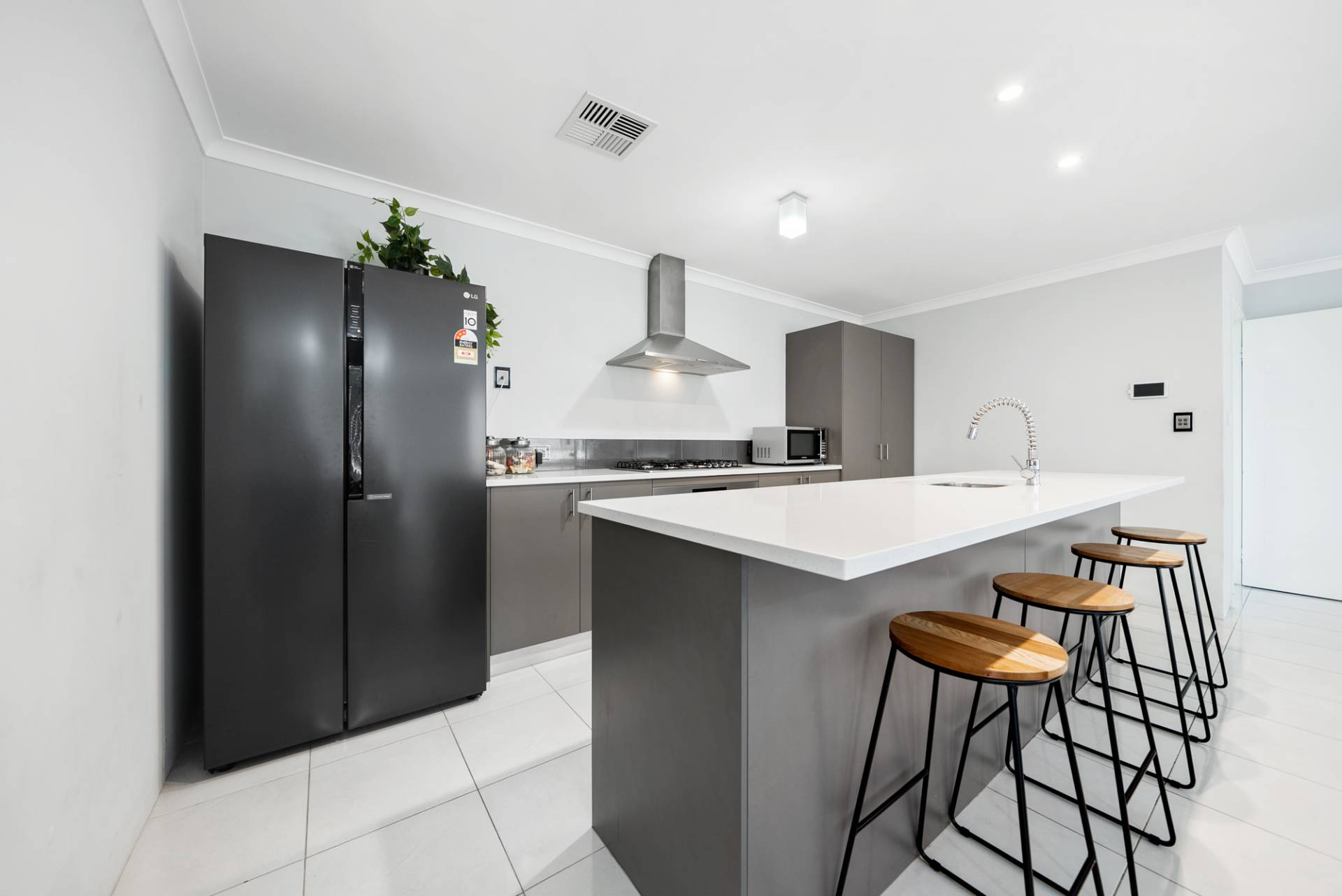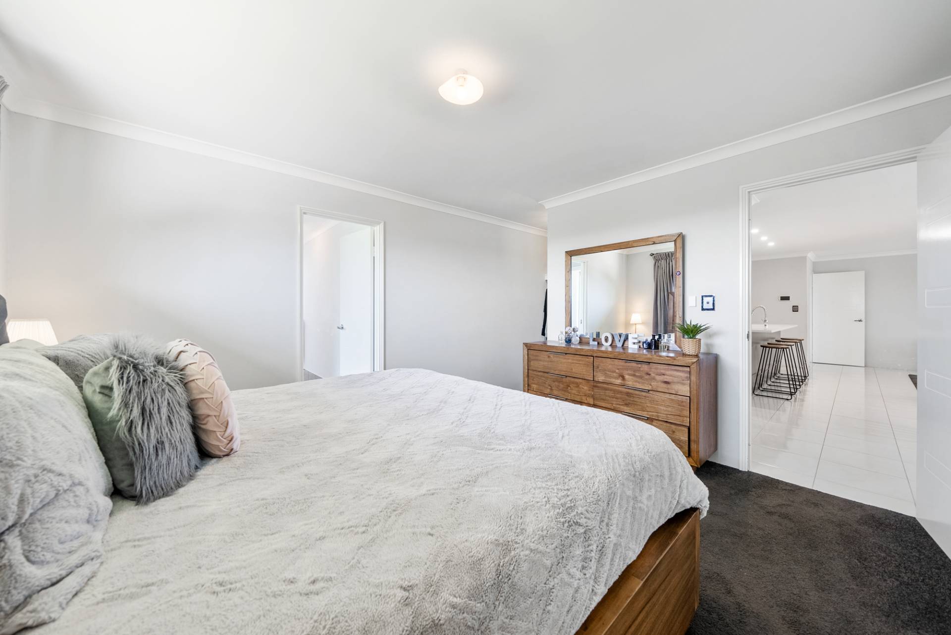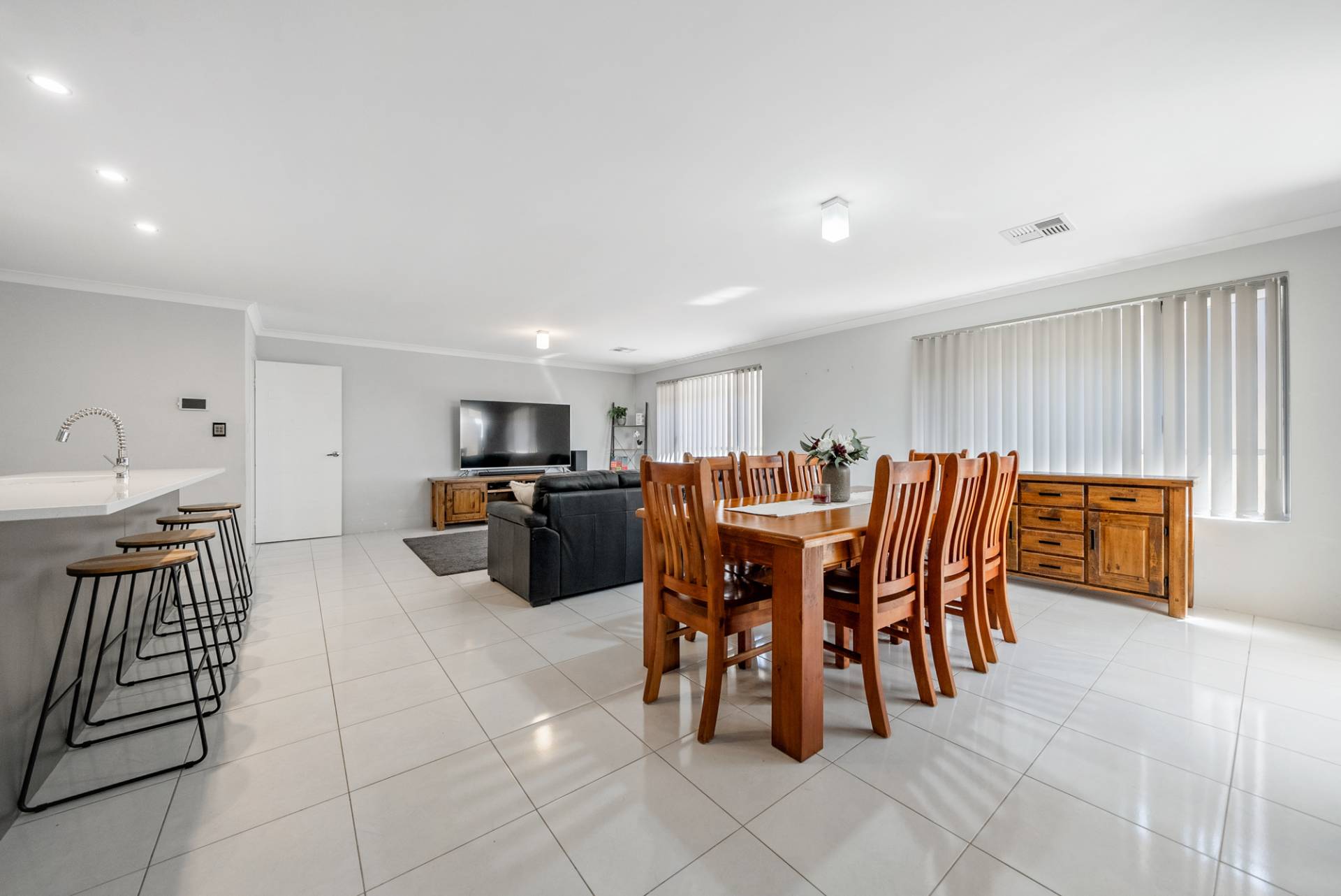 Three queen-sized bedrooms offer built-in double mirrored robes, carpets and vertical blinds, while the luxe master suite comprises a roomy walk-in robe and a beautifully designed ensuite bathroom with double vanities and double shower.
